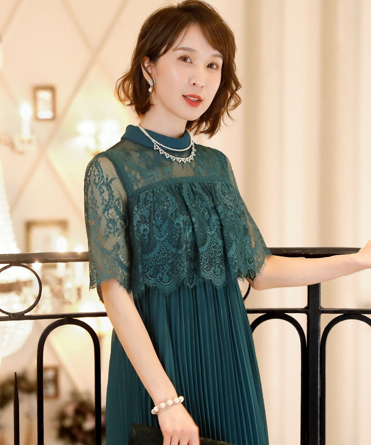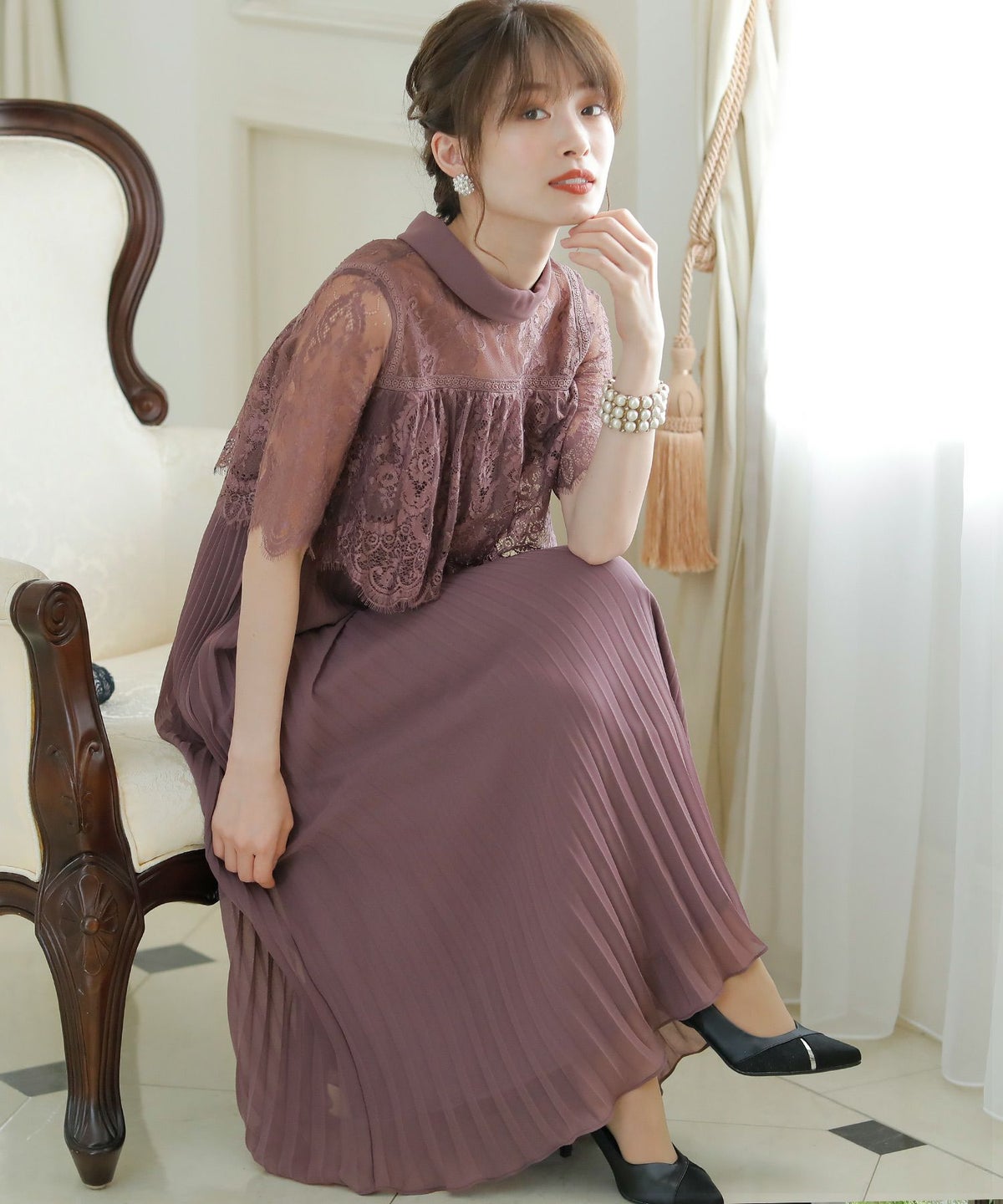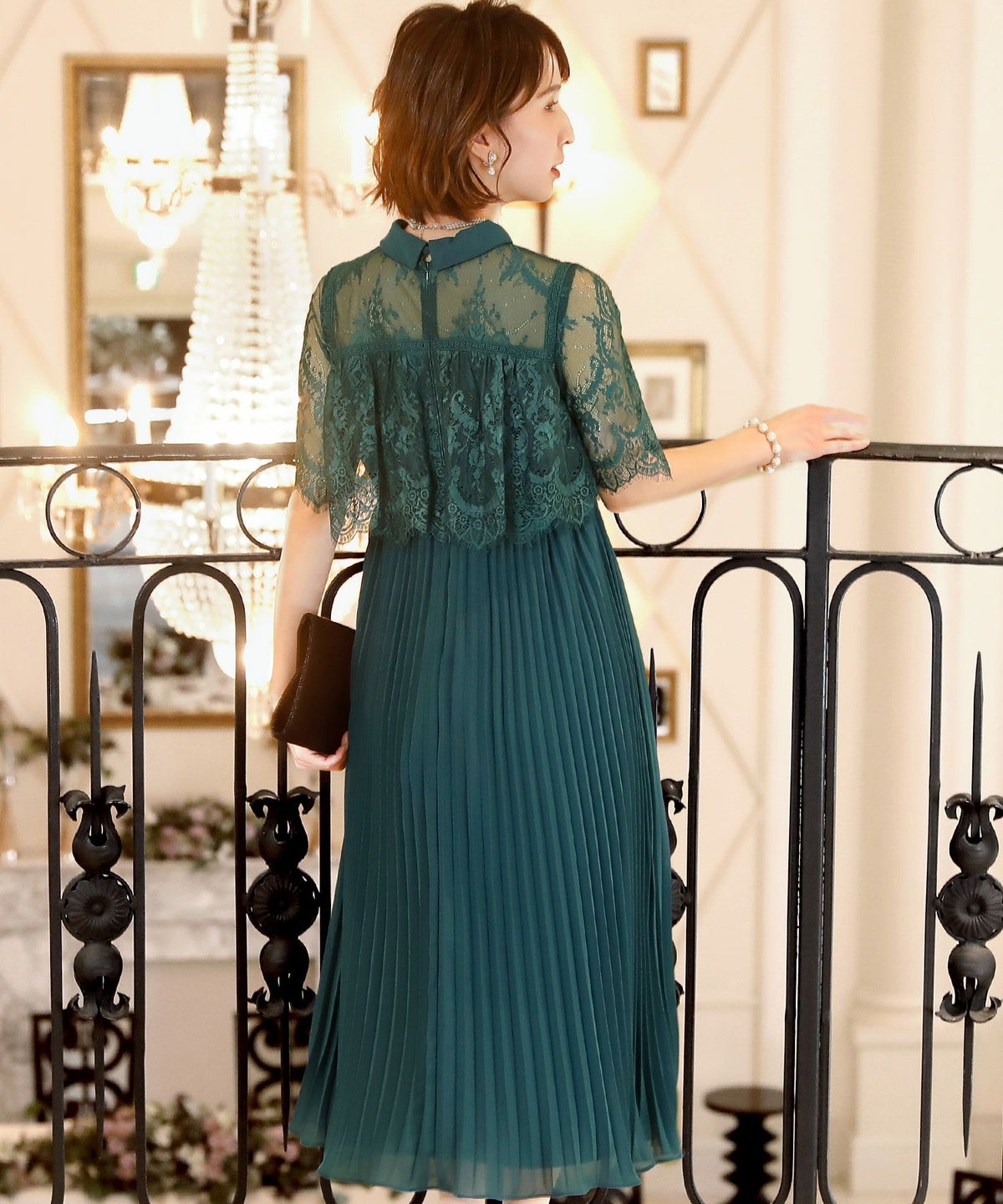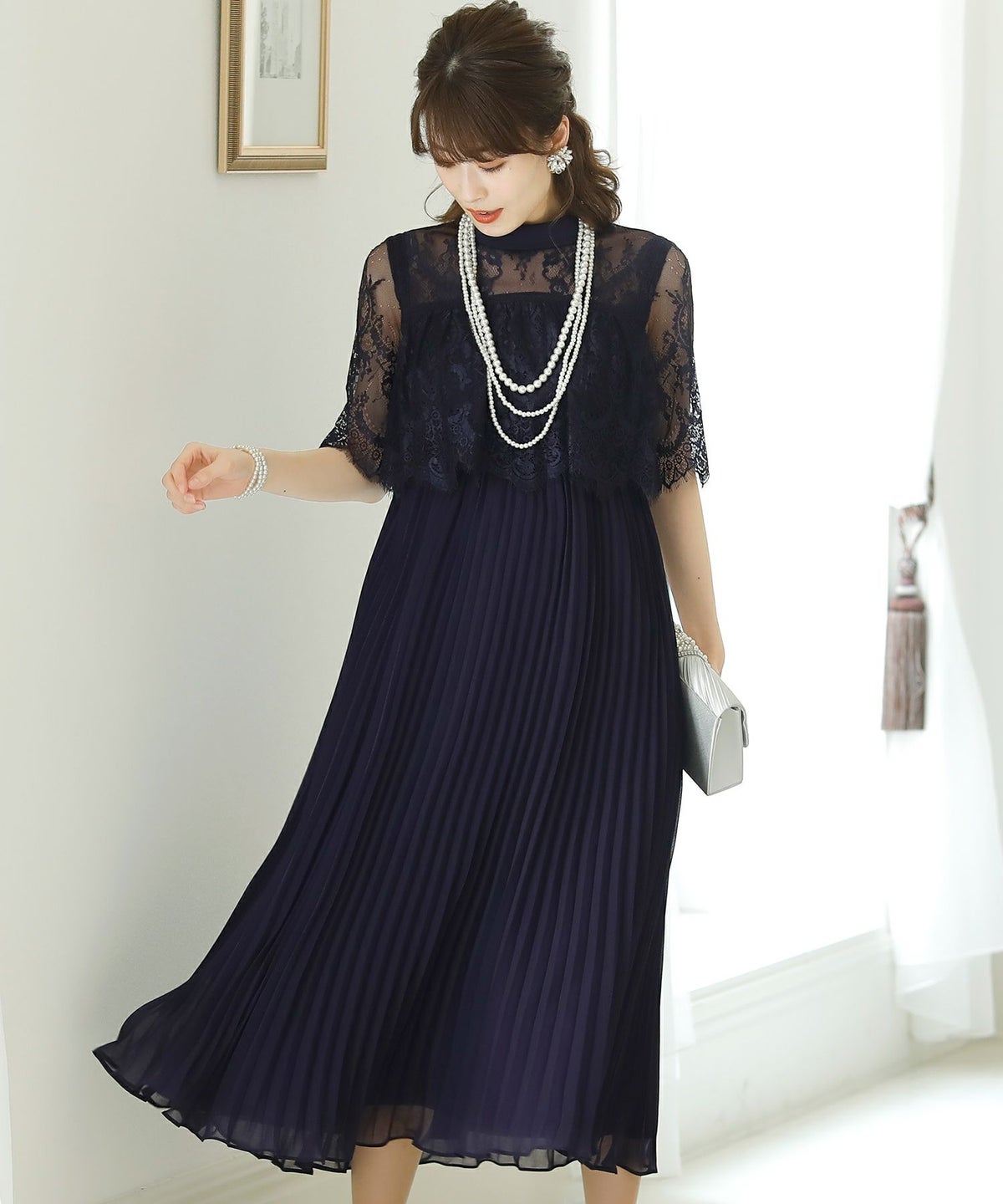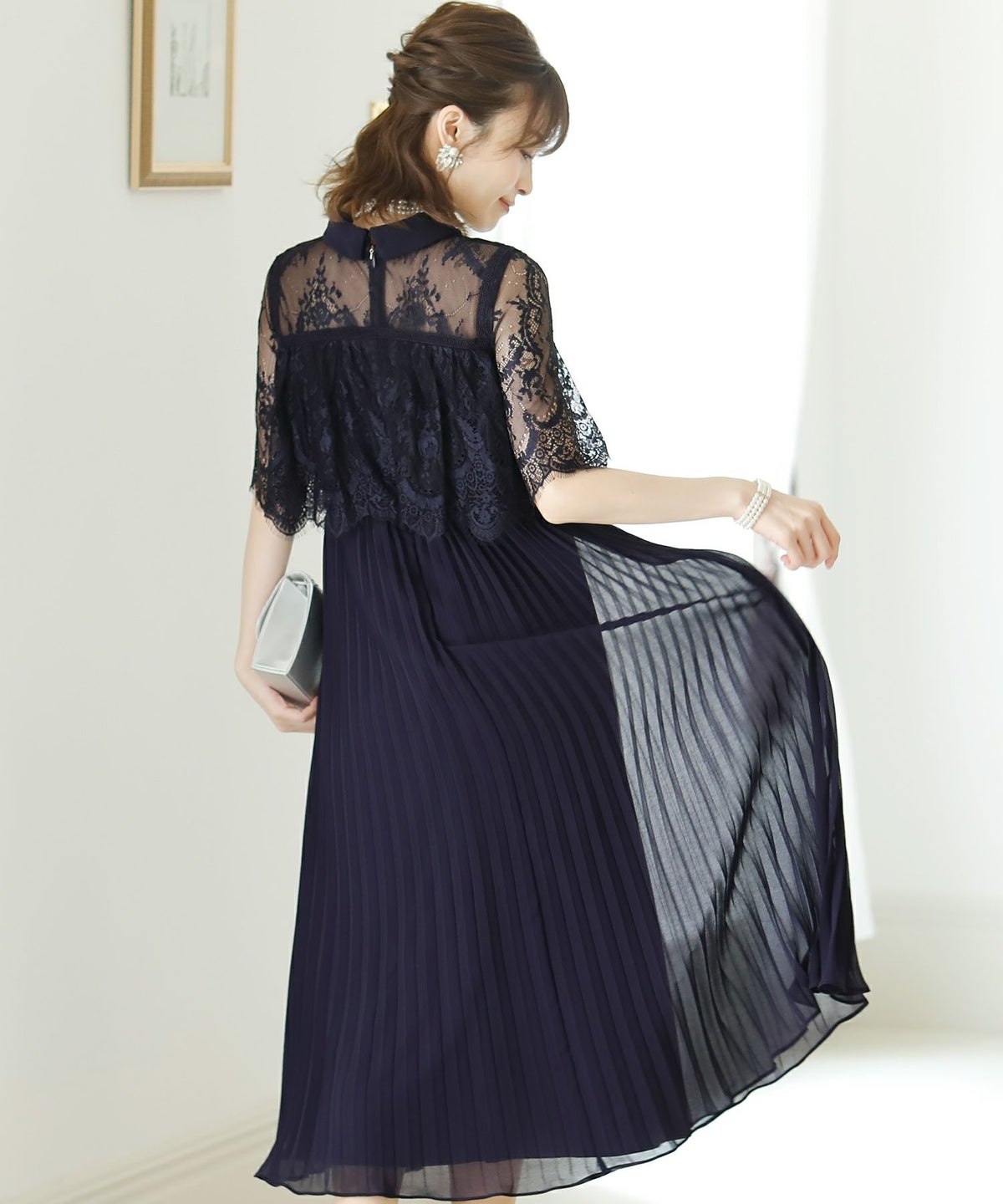★体型カバーポイント------------------------------------------------------------【二の腕】【脚】【ウエスト】【ヒップ】プリーツスカートでウエスト周りやお尻をカバー。繊細なレースが二の腕を隠してくれます。★ジョーゼットプリーツ加工デザインと繊細なレース------------------------------------------------------------派手過ぎないレースとプリーツの組み合わせが綺麗なドレス。折り返しハイネックで女性らしさと肩の透け感が詰まり過ぎないデザインに★★上品&体型カバー叶える技ありドレス------------------------------------------------------------ウエスト切り替えを高めにし、脚長効果は間違いなし。ペプラムデザインで気になるお腹周りを隠し、体型カバーしながら綺麗なシルエットに。★少し長めな丈でスタイリッシュに見えるデザイン------------------------------------------------------------ロング丈プリーツスカートが歩くたびふわりと広がり、とても優雅な印象です。後ろ切替でどこから見ても美しいデザインに仕上げました。★素材感------------------------------------------------------------ジョーゼット生地と繊細なレースの組み合わせ。★こんなシーンの利用にオススメ♪------------------------------------------------------------【結婚式】【二次会】【同窓会】【食事会】【セレモニー】【発表会】でもご利用いただけます。