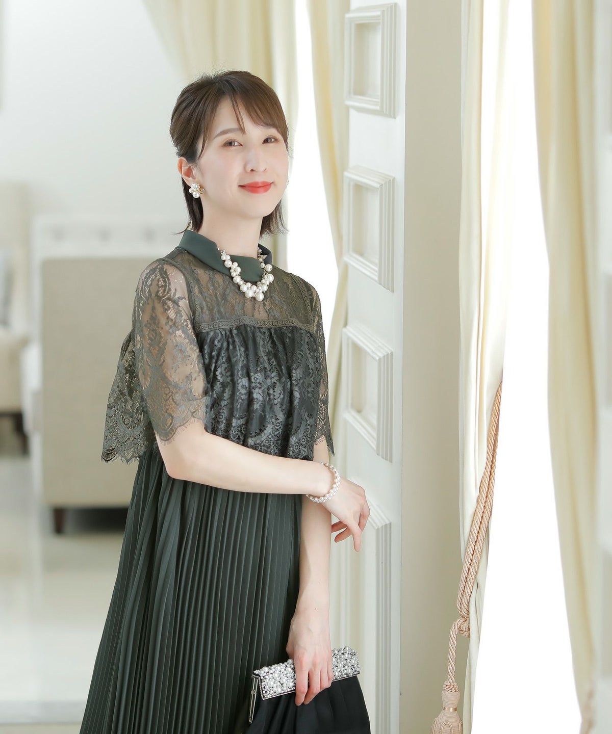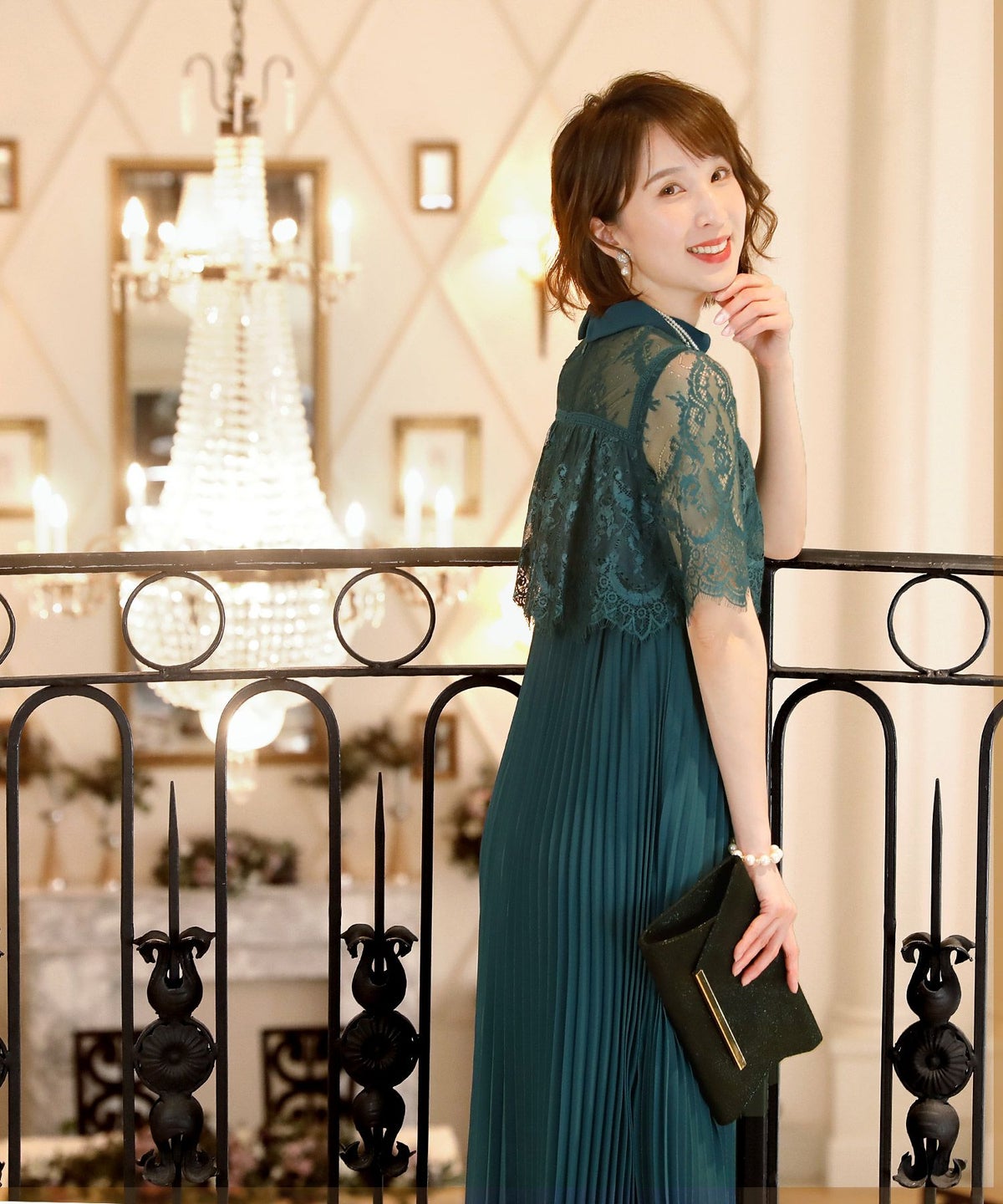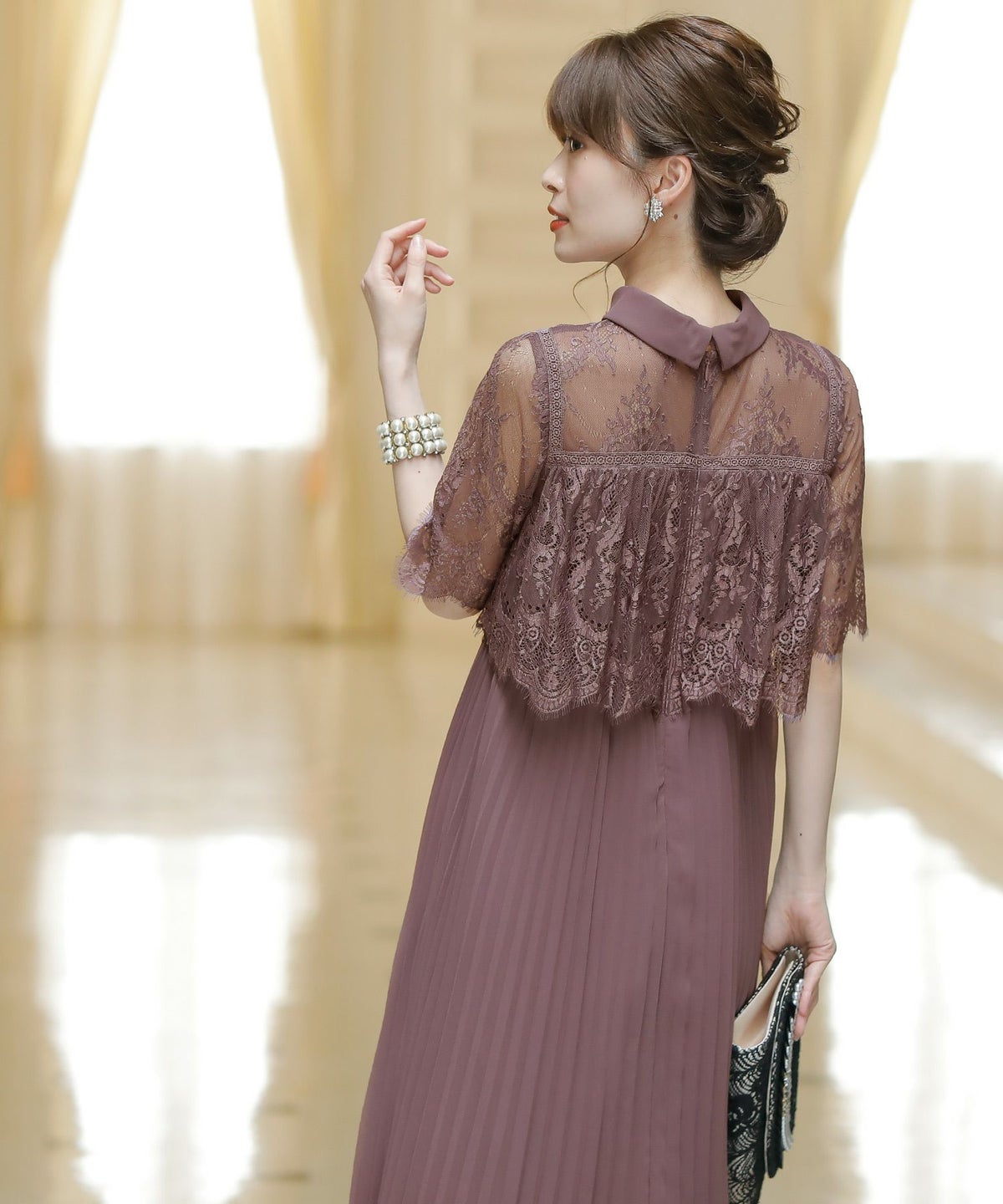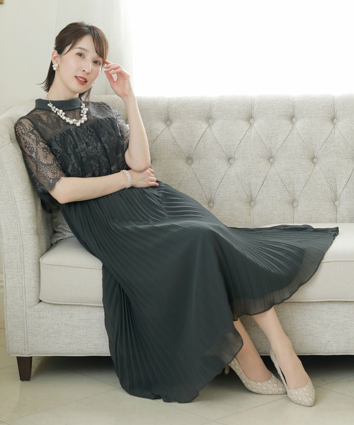 ★体型カバーポイント------------------------------------------------------------【二の腕】【脚】【ウエスト】【ヒップ】プリーツスカートでウエスト周りやお尻をカバー。繊細なレースが二の腕を隠してくれます。★ジョーゼットプリーツ加工デザインと繊細なレース------------------------------------------------------------派手過ぎないレースとプリーツの組み合わせが綺麗なドレス。折り返しハイネックで女性らしさと肩の透け感が詰まり過ぎないデザインに★★上品&体型カバー叶える技ありドレス------------------------------------------------------------ウエスト切り替えを高めにし、脚長効果は間違いなし。ペプラムデザインで気になるお腹周りを隠し、体型カバーしながら綺麗なシルエットに。★少し長めな丈でスタイリッシュに見えるデザイン------------------------------------------------------------ロング丈プリーツスカートが歩くたびふわりと広がり、とても優雅な印象です。後ろ切替でどこから見ても美しいデザインに仕上げました。★素材感------------------------------------------------------------ジョーゼット生地と繊細なレースの組み合わせ。★こんなシーンの利用にオススメ♪------------------------------------------------------------【結婚式】【二次会】【同窓会】【食事会】【セレモニー】【発表会】でもご利用いただけます。