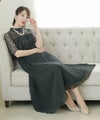 ◆素材:スカート部分…ポリエステル100%レース部分…ナイロン100%裏地…ポリエステル100%◆伸縮性:なし◆裏地:あり◆ファスナー:あり(ワンピース背面)◆透け感:あり(デコルテ・袖)◆付属品:なし◆カラー:アーミーカーキ/モーブピンク/ピーコックグリーン/ダークパープル