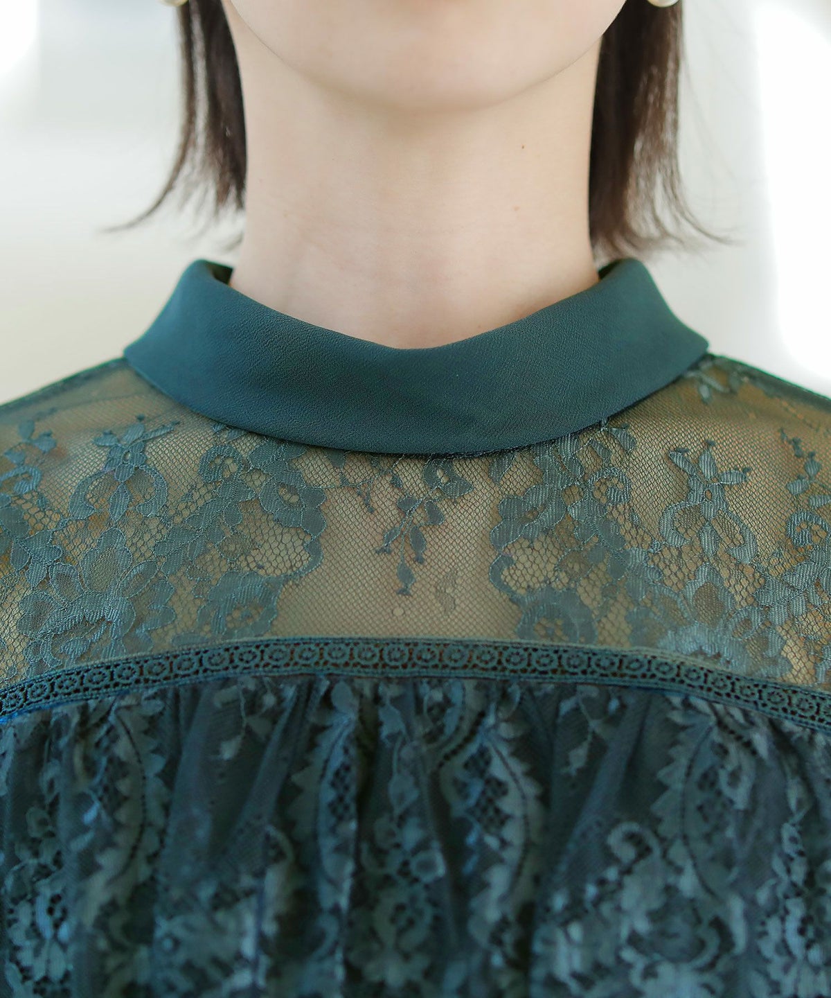 折り返しハイネックで女性らしさと肩の透け感が詰まり過ぎないデザインに★