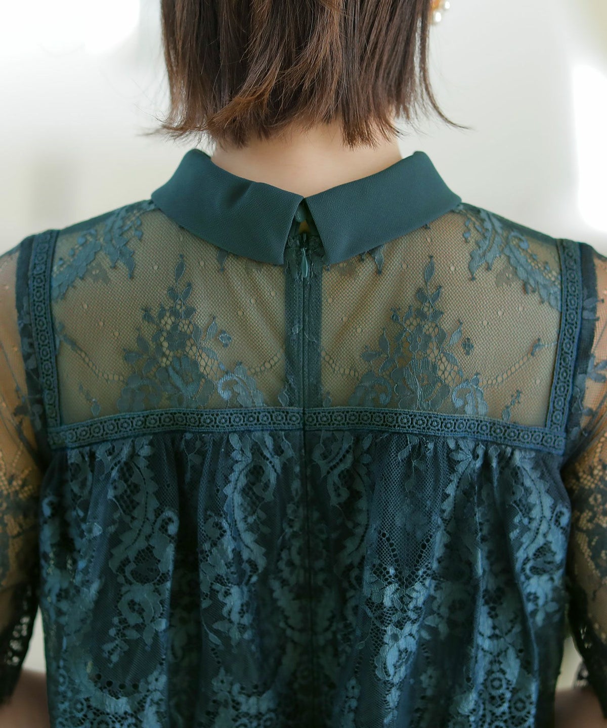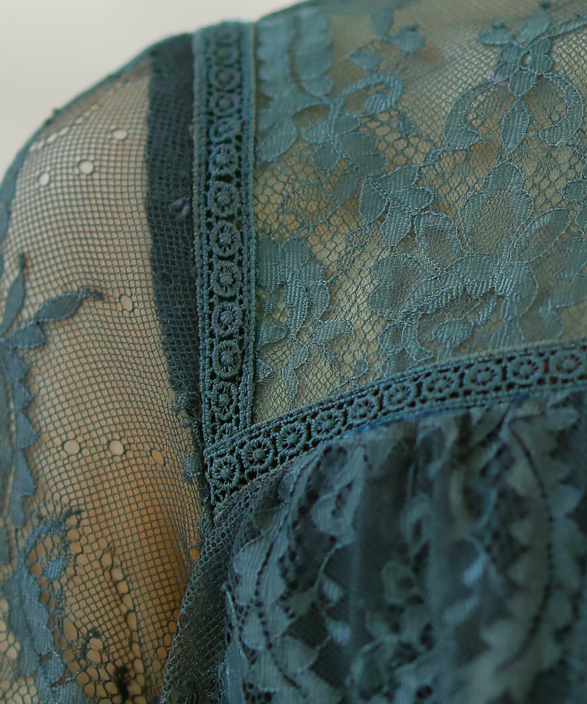 ジョーゼット生地と繊細なレースの組み合わせ。
