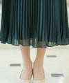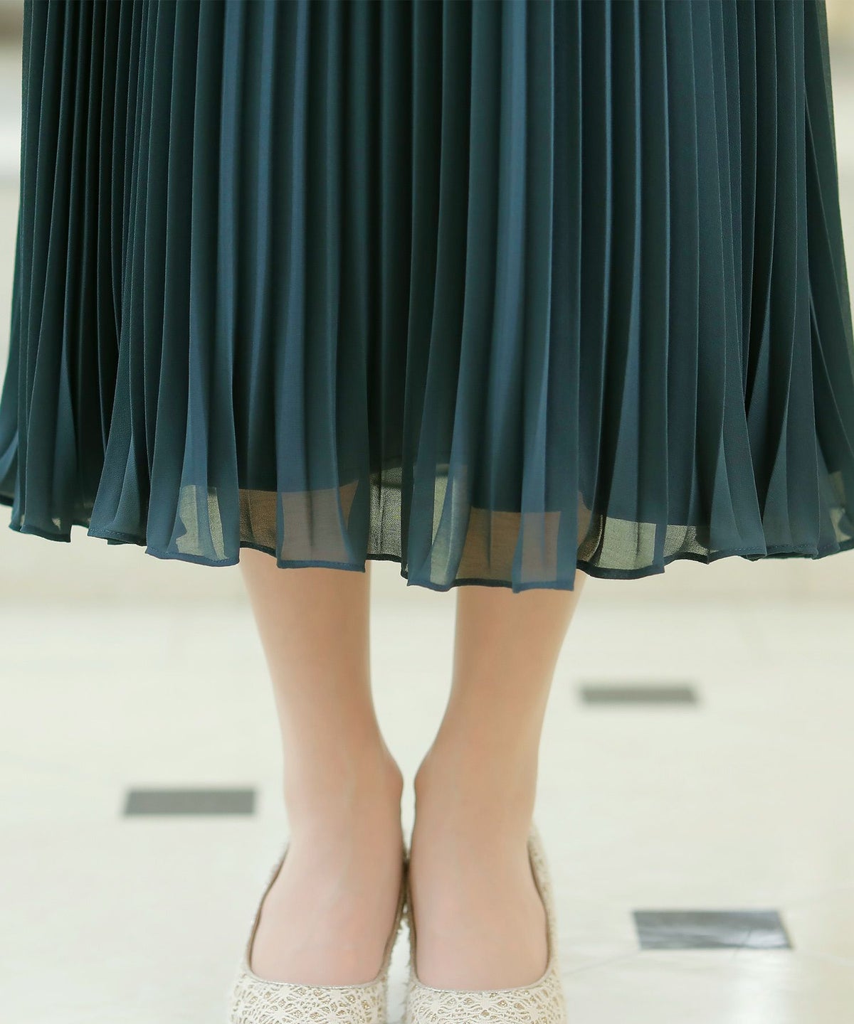 ロング丈プリーツスカートが歩くたびふわりと広がり、とても優雅な印象です。