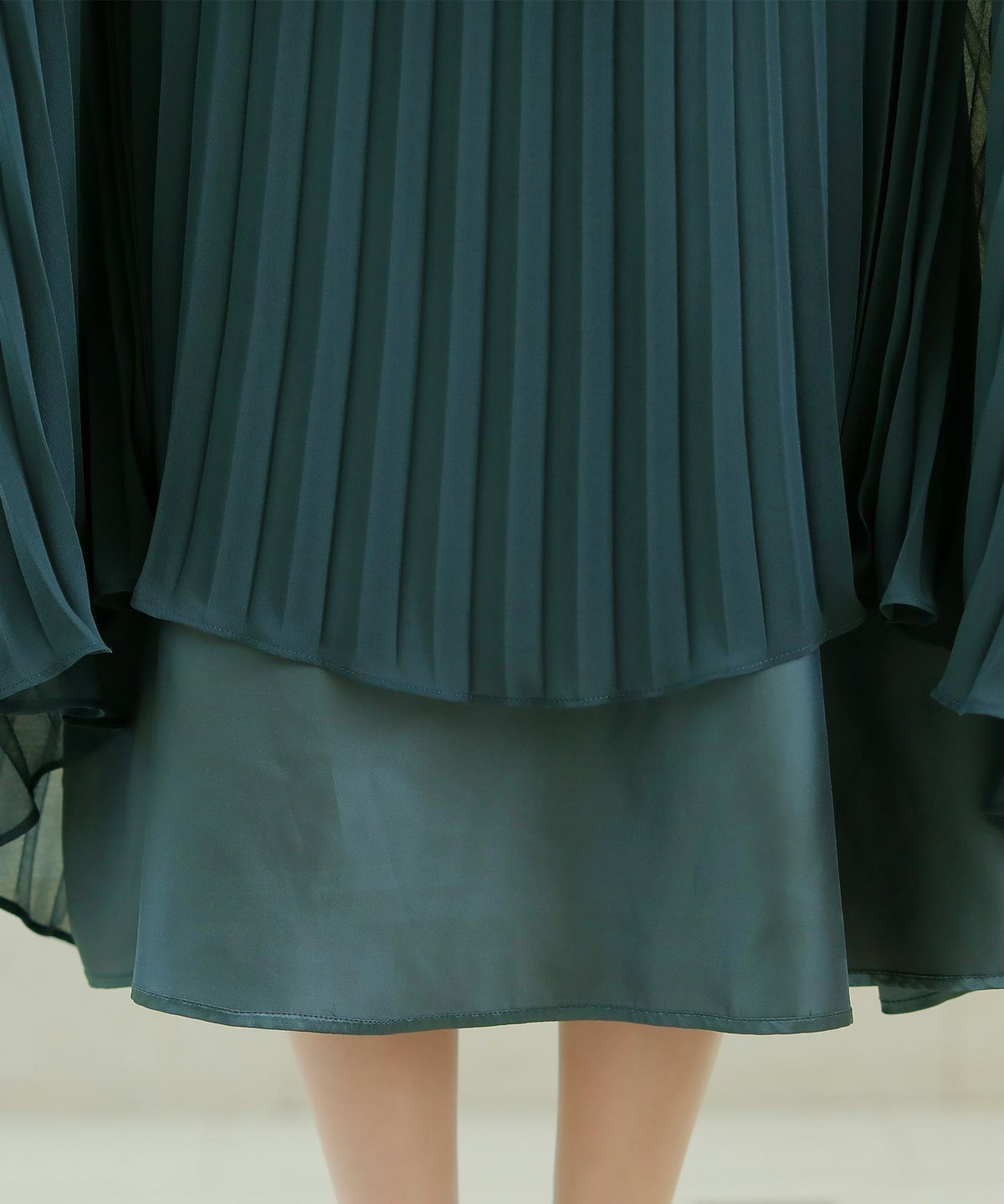 上品&体型カバー叶える技ありドレス ハイネックドッキングプリーツドレス