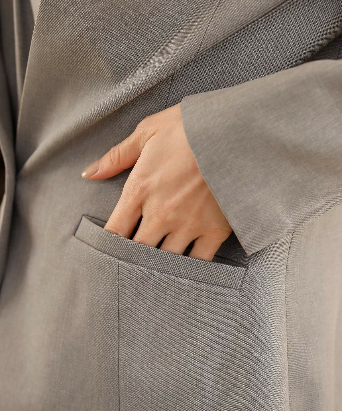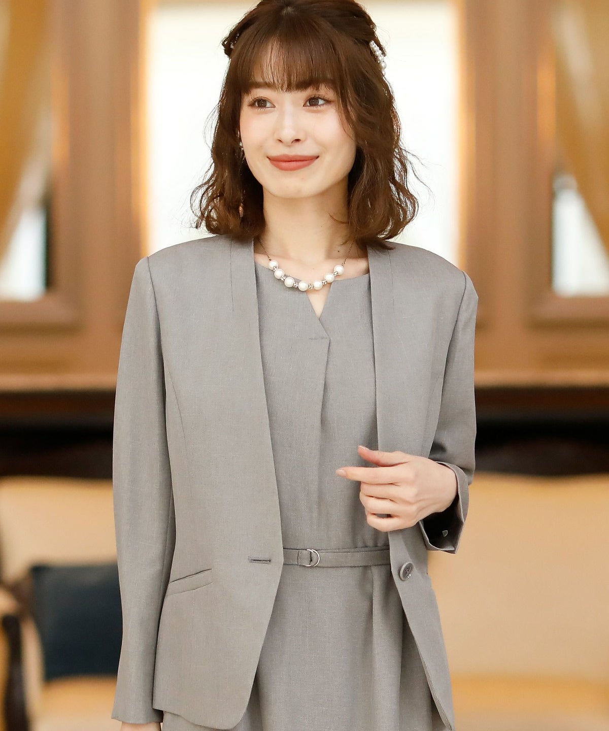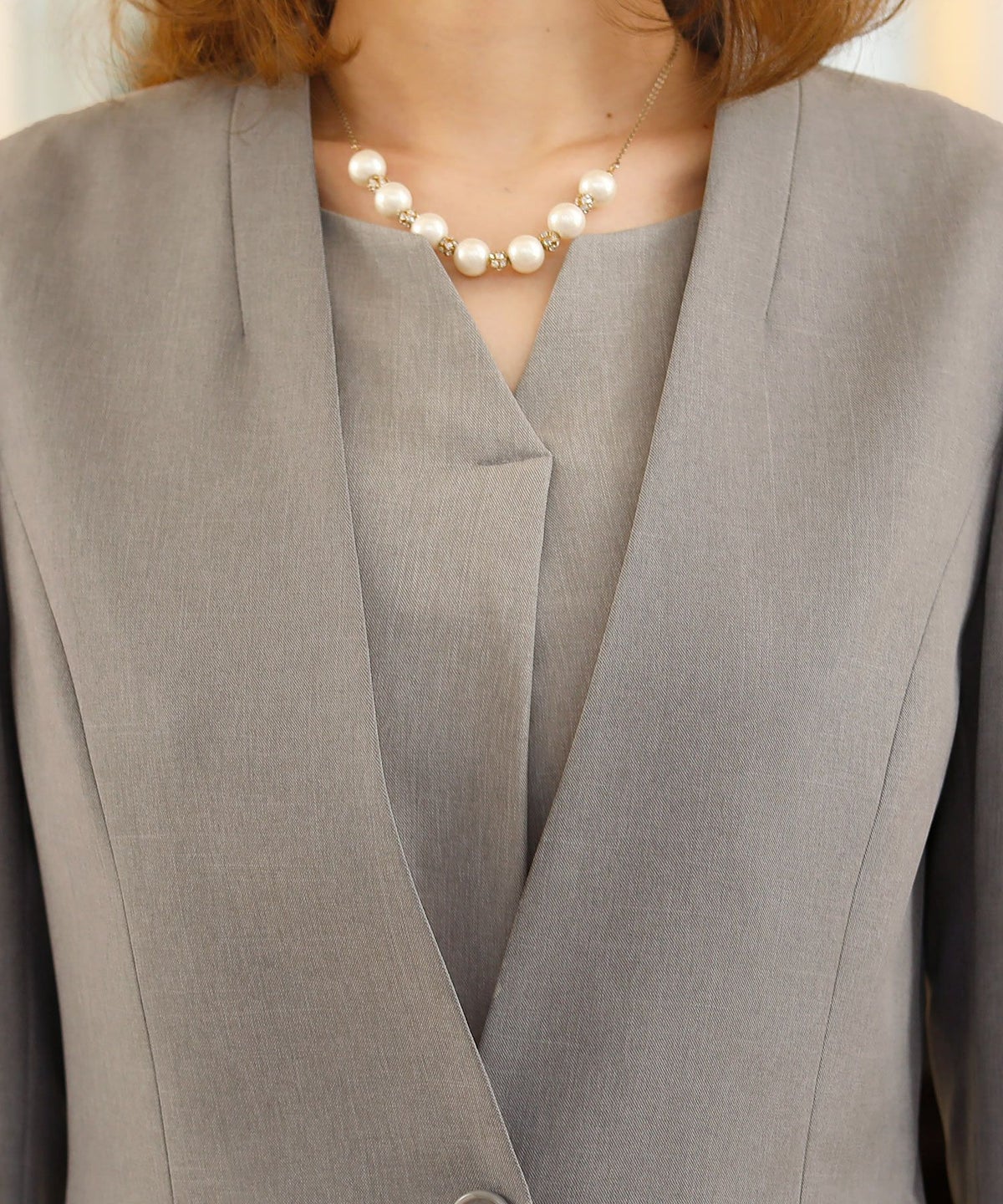 Vネックが美しいノーカラージャケットはオフィスでもフォーマルでも大活躍間違いなし♪