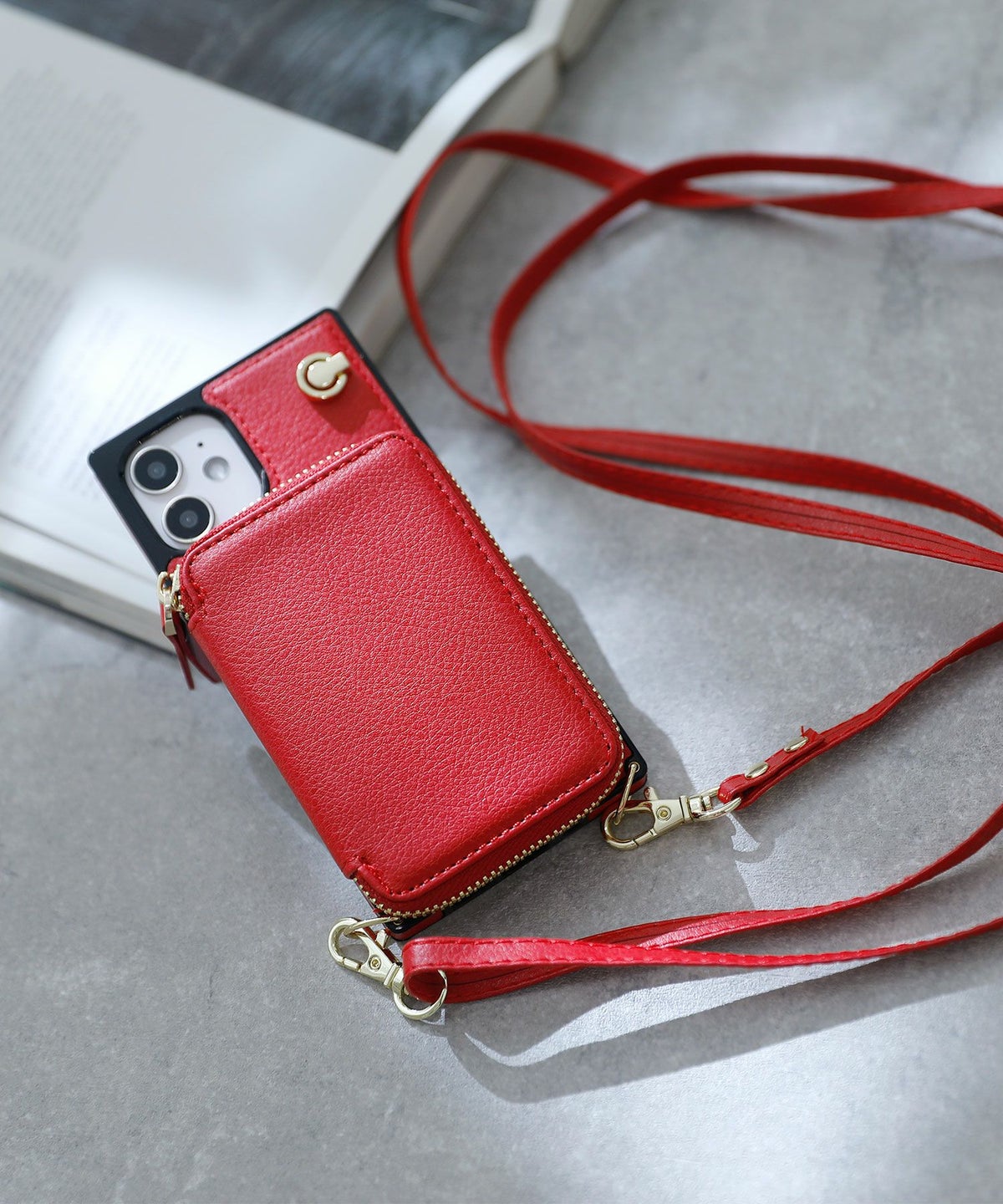 スマホを片手に身軽にお出かけ♪ ケース付きレザースマホカバー・iPhone12mini用
