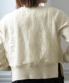 ★背面にレースを使用した上品ラメカーデ♪------------------------------------------------------------ハイゲージなラメニットを使用したカーディガン。背面にはレースを施し後ろ姿も可愛い♪ややバルーンシルエットな袖も華奢見えポイントに。★マットゴールドのボタンが今っぽいアクセントに------------------------------------------------------------ボタンはゴールドになっており、さり気ないデザイン性が可愛い一枚。スリットの入ったやや短めの丈感はハイウエスト見えし、綺麗なスタイルに見せてくれます。★素材感------------------------------------------------------------細やかで上品なラメ感可愛いニット。伸縮性あるしっかりとした生地感で、シワになりにくいのも嬉しい。