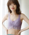 ★優しく寄せて形をきれいにしてくれる育乳ナイトブラ------------------------------------------------------------寝ているときに劣化しやすいバストの為の夜用ブラジャー。ノンワイヤーなので痛くなく、横もれガードの脇高設計になっています。寝返りやイレギュラーな動きにも美しいバストをキープしてくれます。★フロントホック付きでしっかりバスト補正------------------------------------------------------------すぽっと被って着脱ラクチン。正面のフロントホックがバストをしっかり支えます。とにかくかわいいブラデザインとカラバリで気分とバストを上げてくれる盛り上げレースブラです♪★素材感------------------------------------------------------------フリルレースが可愛く、背面やフロントホック部はストレッチの効いた心地いい生地感。