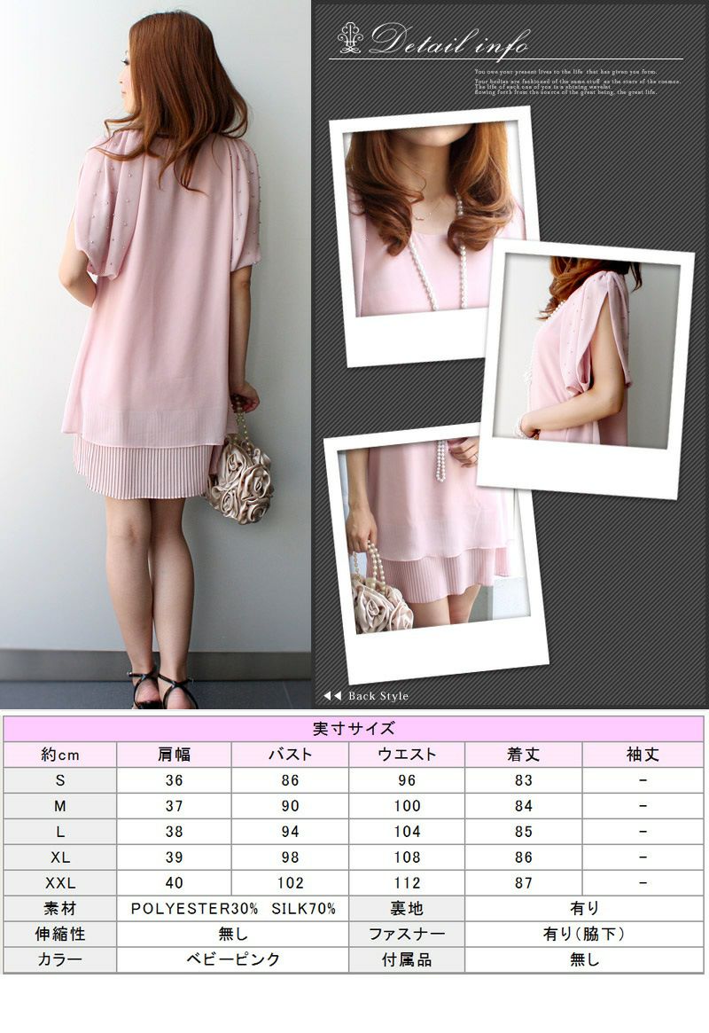 セレブ/チュニックワンピース/二次会/ドレス/ピンク/プリーツ