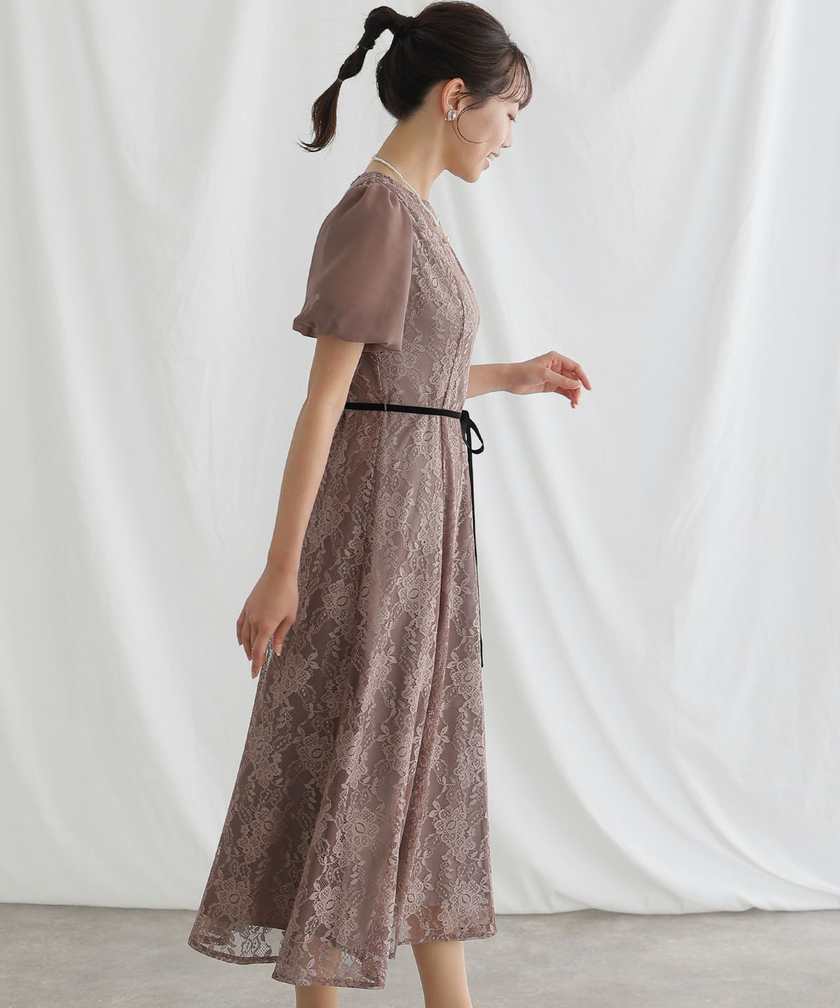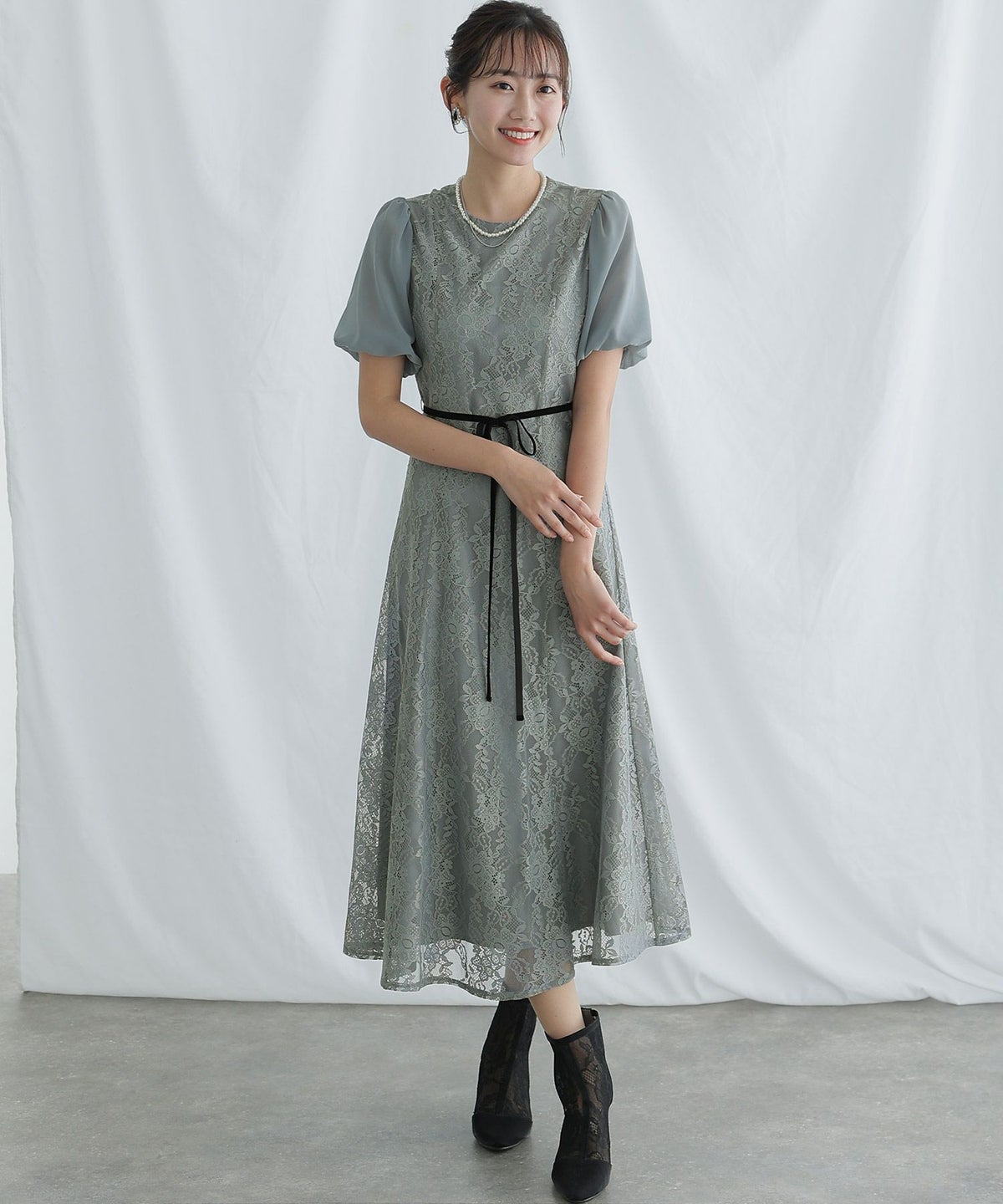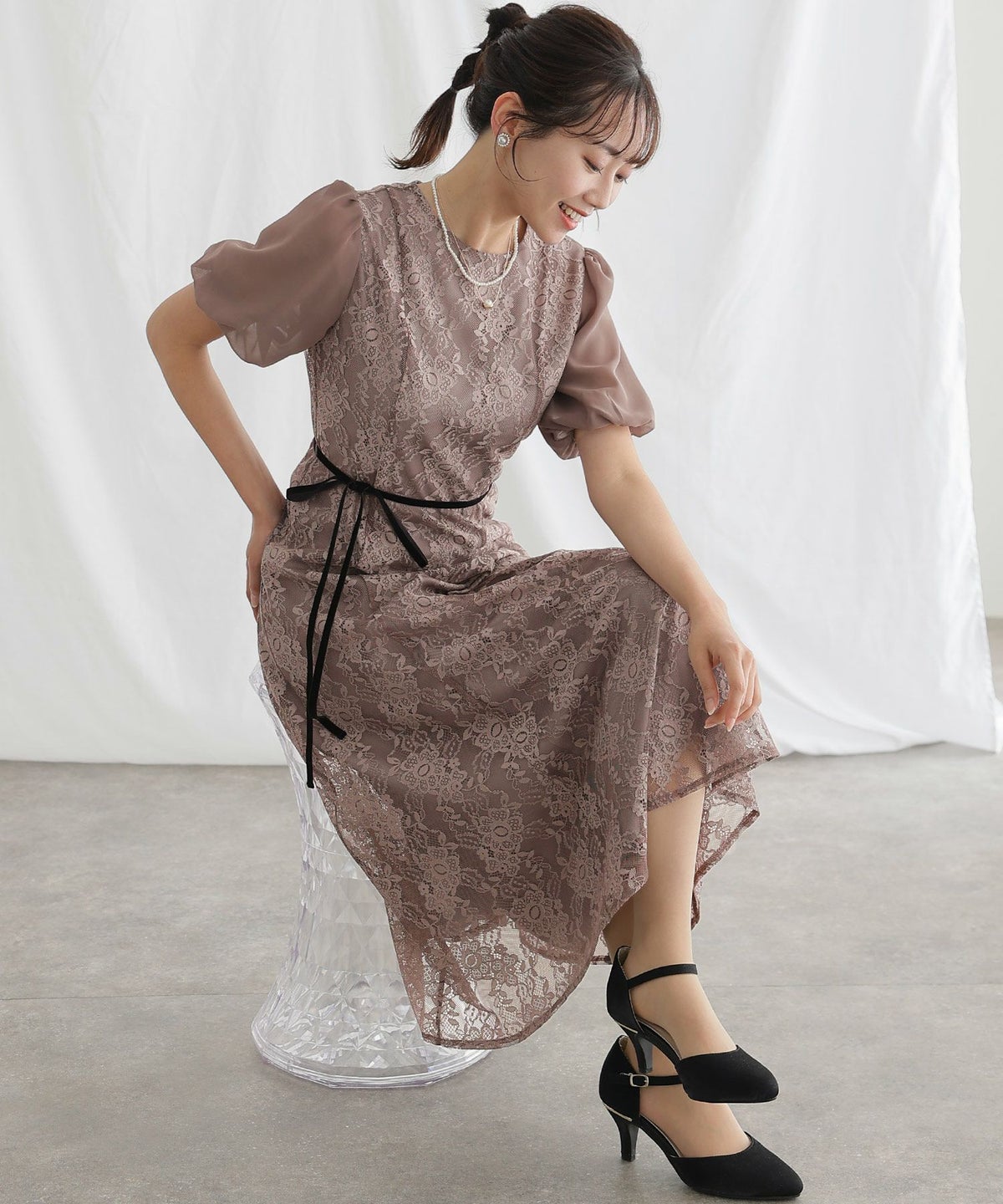 ■シフォン×ベロアリボンレースとシフォンの切り替えデザインが可愛いワンピースです。ニュアンスカラーがおしゃれでこなれた雰囲気に。付属のリボンは前後どちらでも結んでいただけるので気分に合わせてアレンジ可能◎オケージョンシーンはもちろん、特別なお食事会にもおすすめ ■ベロアリボンでウエストをマークしすっきりとしたシルエットに体型カバーポイント:【二の腕】【脚】【ウエスト】【ヒップ】Aラインで太もものラインを拾わず、安心してご着用いただけます。ボリュームのある袖が二の腕をさりげなくカバー ■シフォンの上品な透け感で露出が気になる方にもおすすめ繊細なレースが美しく大人女性にぴったりなワンピースです。 ■おすすめ着用シーン【結婚式】【二次会】【同窓会】【食事会】【セレモニー】【発表会】【デイリー】にご利用いただけます。
