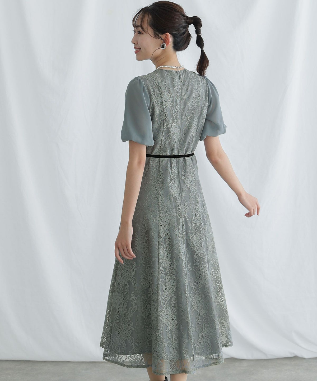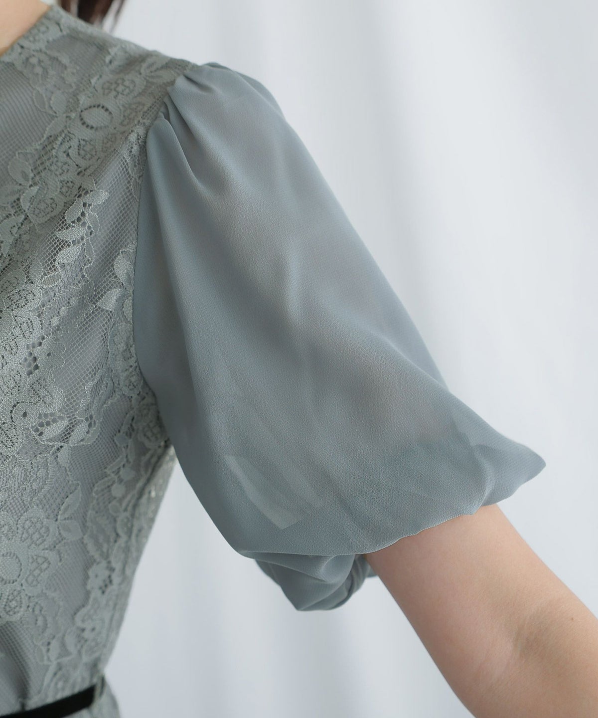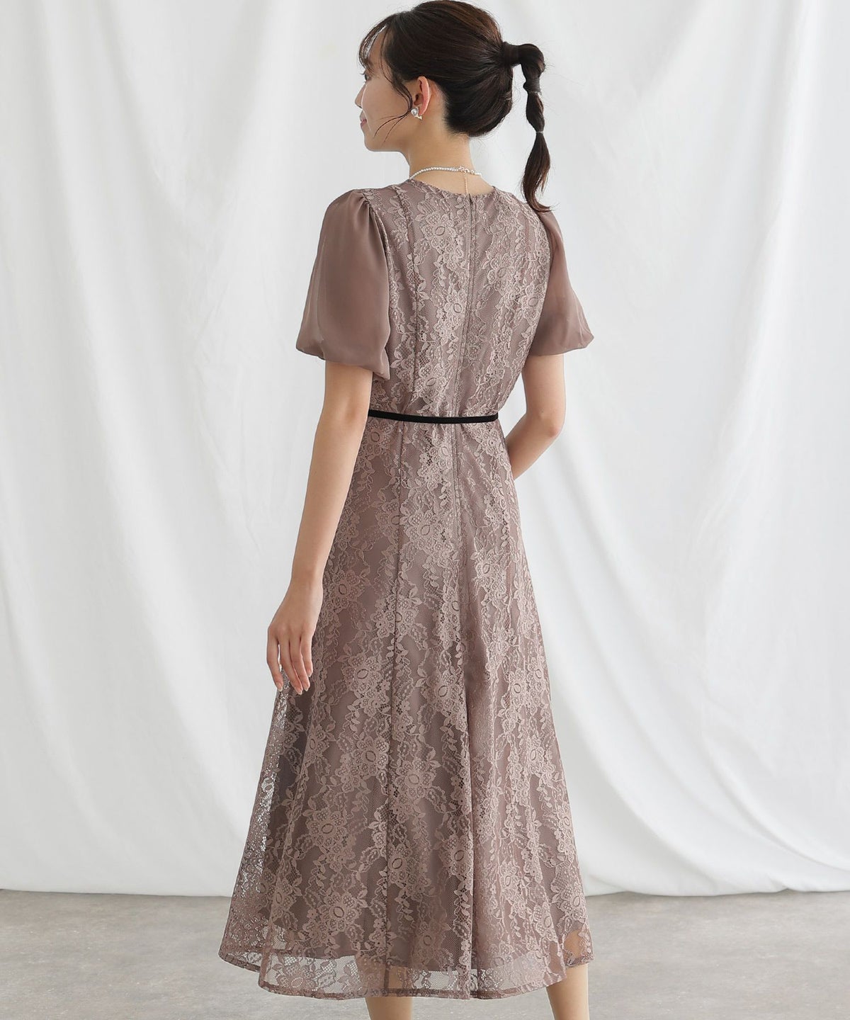 ■シフォン×ベロアリボンレースとシフォンの切り替えデザインが可愛いワンピースです。ニュアンスカラーがおしゃれでこなれた雰囲気に。付属のリボンは前後どちらでも結んでいただけるので気分に合わせてアレンジ可能◎オケージョンシーンはもちろん、特別なお食事会にもおすすめ ■ベロアリボンでウエストをマークしすっきりとしたシルエットに体型カバーポイント:【二の腕】【脚】【ウエスト】【ヒップ】Aラインで太もものラインを拾わず、安心してご着用いただけます。ボリュームのある袖が二の腕をさりげなくカバー ■シフォンの上品な透け感で露出が気になる方にもおすすめ繊細なレースが美しく大人女性にぴったりなワンピースです。 ■おすすめ着用シーン【結婚式】【二次会】【同窓会】【食事会】【セレモニー】【発表会】【デイリー】にご利用いただけます。