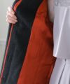 生地はアンゴラ60%とウール40%使用した暖かい生地。ファーにはブルーフォックスを使用してます。更にオレンジの裏地はシルク100%の生地で肌触りの良さが嬉しい。