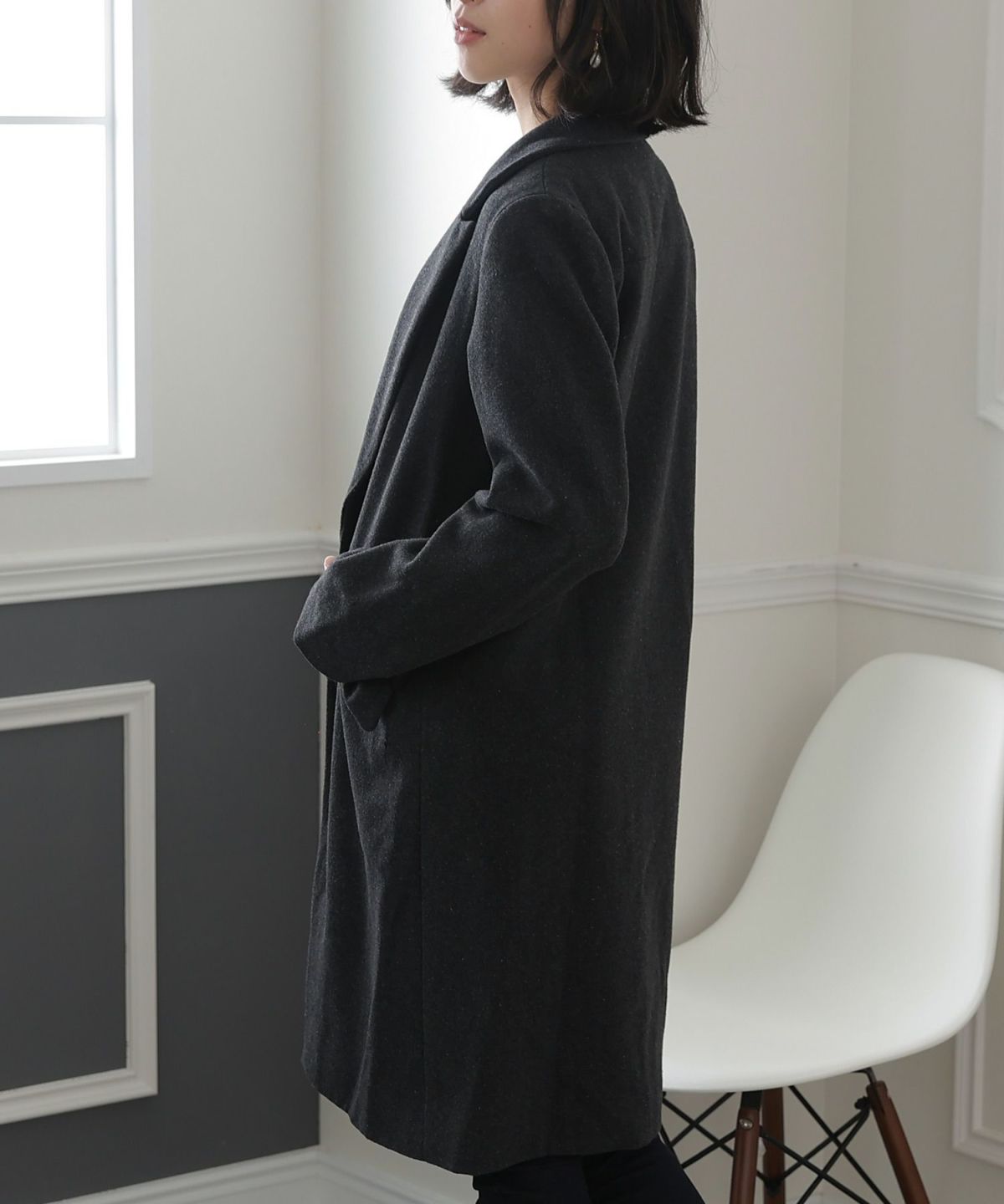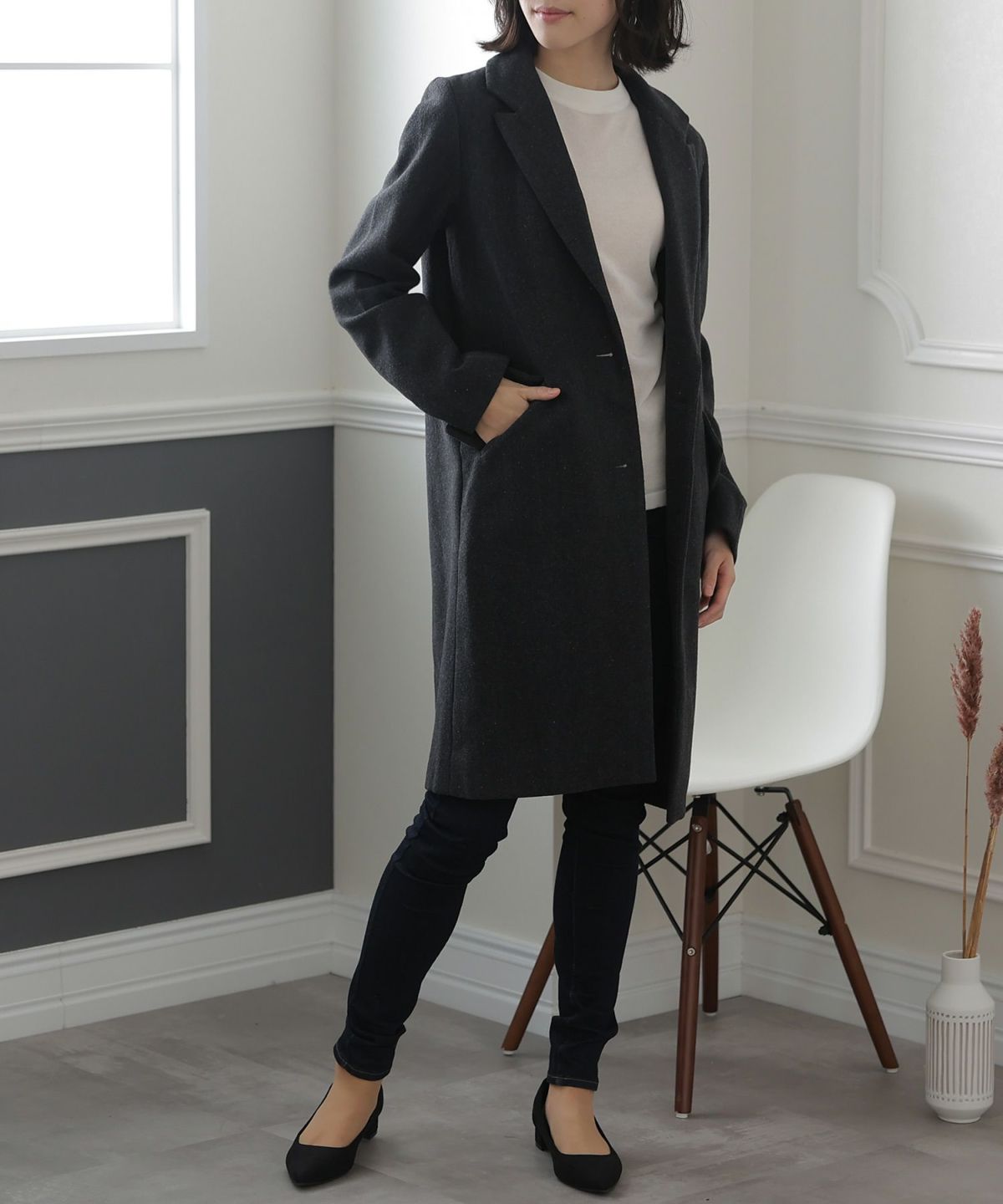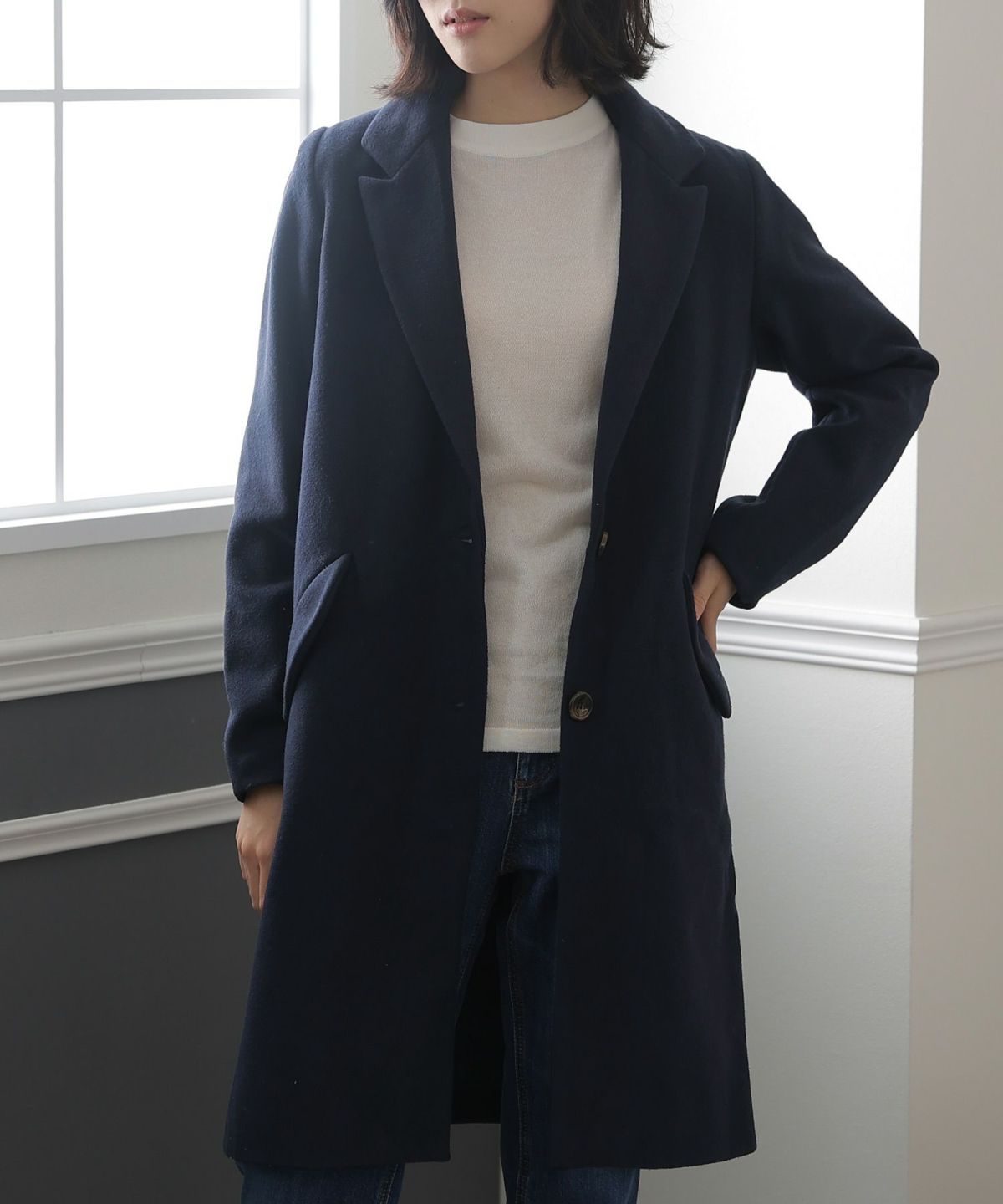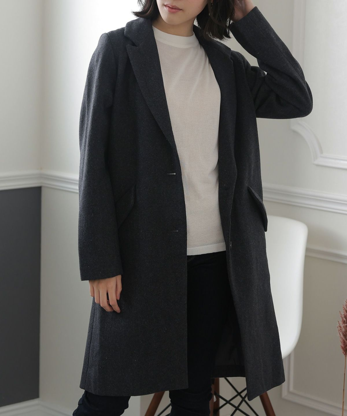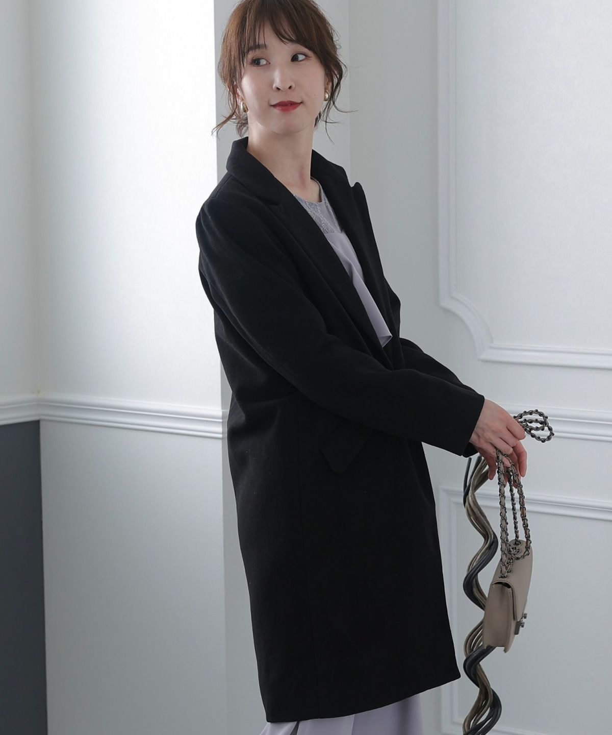 ★スタンダードなシルエットのこなれ感コート------------------------------------------------------------クールな印象高めるスタンダードシルエットなコート。マニッシュな雰囲気を持ちつつ大人の女性らしいスタイリングを叶えます。★襟の丸みとフラップ付きポケットがポイント------------------------------------------------------------少し抜け感与える襟の丸みと、フラップ付きポケットがデザインのアクセントに。羽織るだけできちんと感が出るのでお出かけ着やオフィス用まで幅広く着用いただけます。★素材感------------------------------------------------------------上品で控えめな起毛感が大人っぽい印象を高めてくれます。