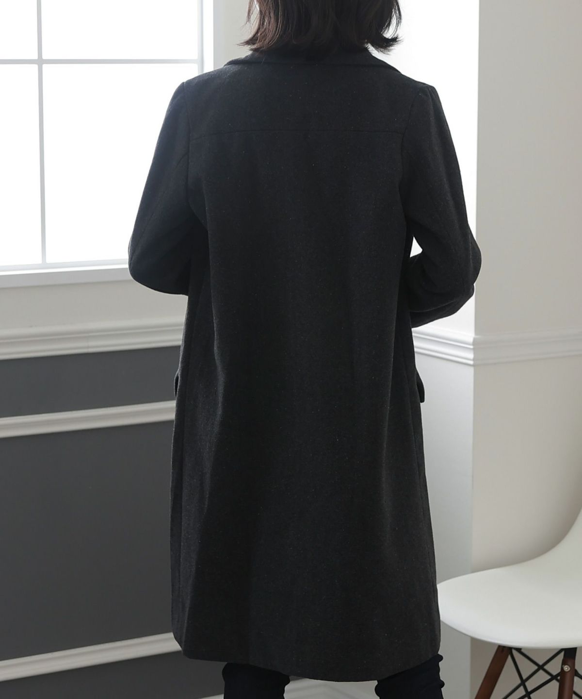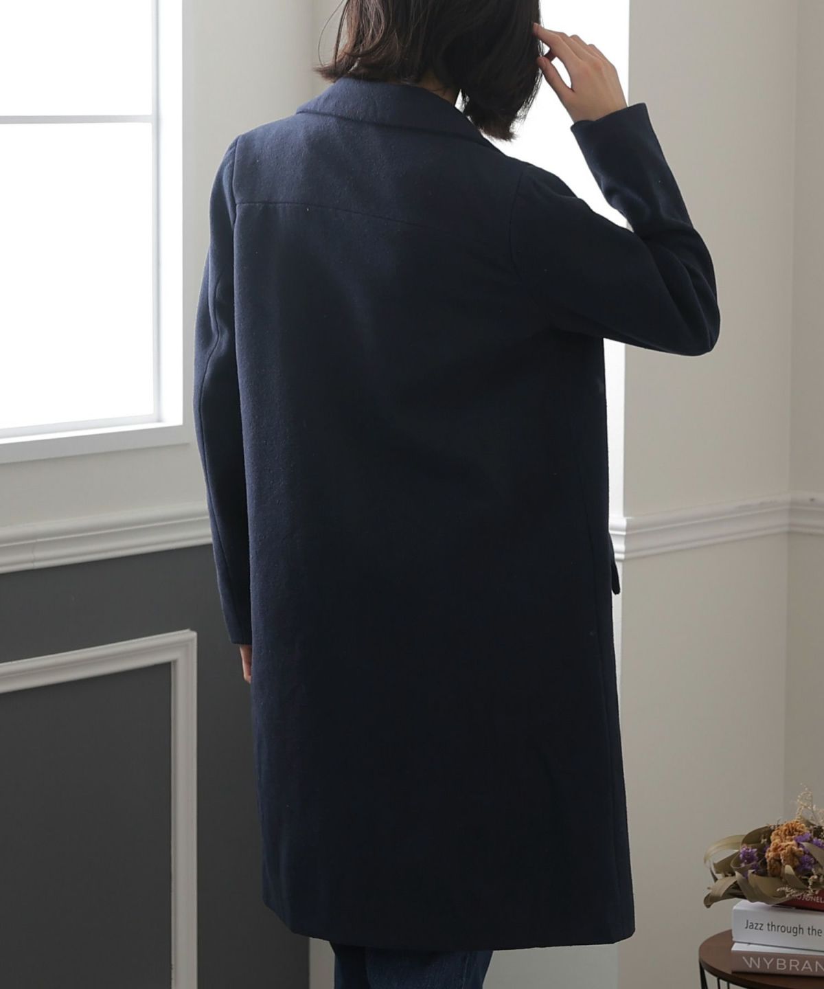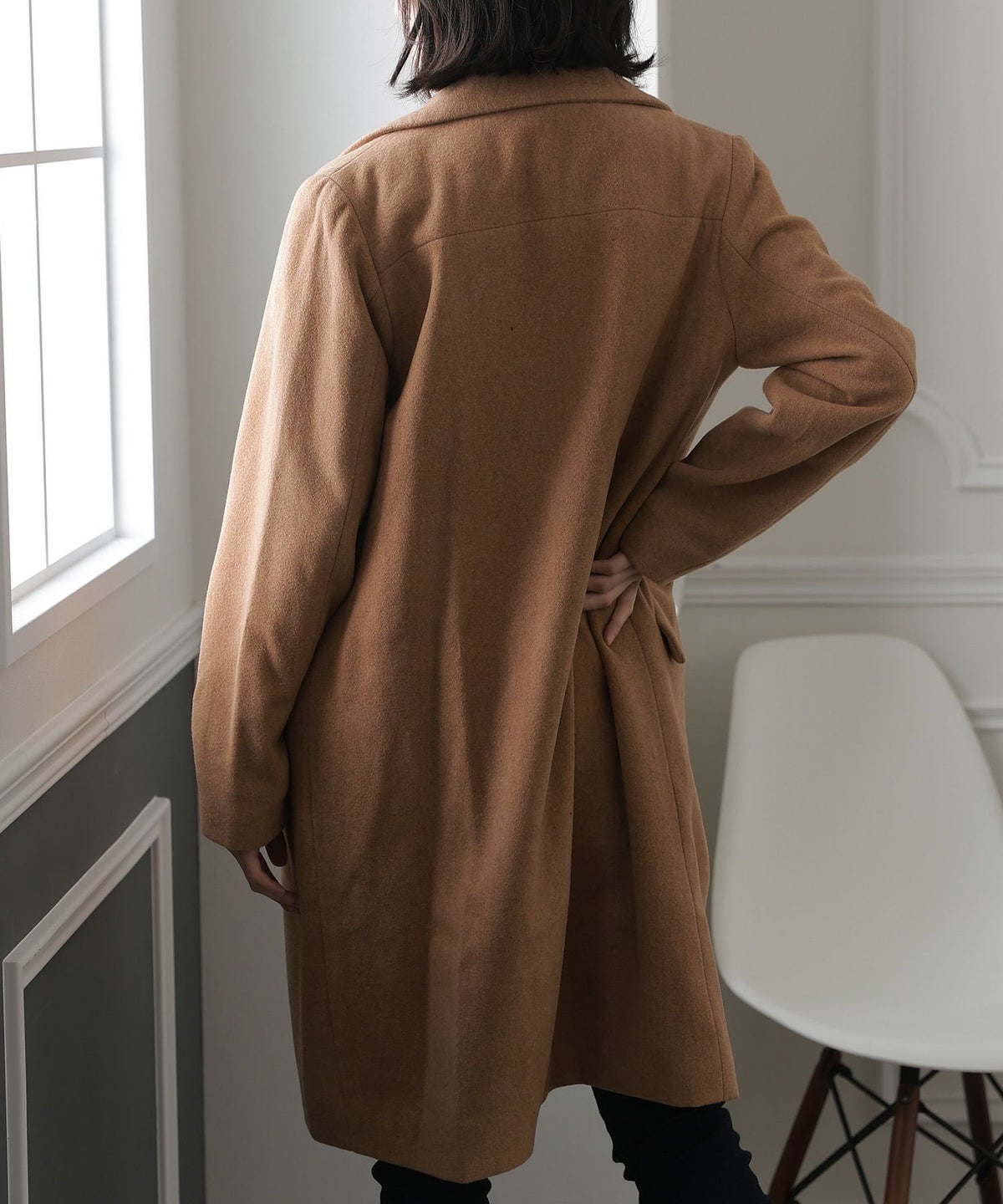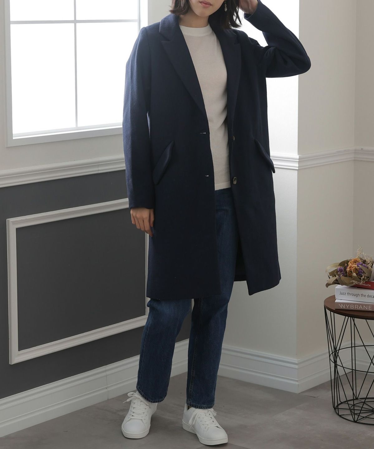★スタンダードなシルエットのこなれ感コート------------------------------------------------------------クールな印象高めるスタンダードシルエットなコート。マニッシュな雰囲気を持ちつつ大人の女性らしいスタイリングを叶えます。★襟の丸みとフラップ付きポケットがポイント------------------------------------------------------------少し抜け感与える襟の丸みと、フラップ付きポケットがデザインのアクセントに。羽織るだけできちんと感が出るのでお出かけ着やオフィス用まで幅広く着用いただけます。★素材感------------------------------------------------------------上品で控えめな起毛感が大人っぽい印象を高めてくれます。