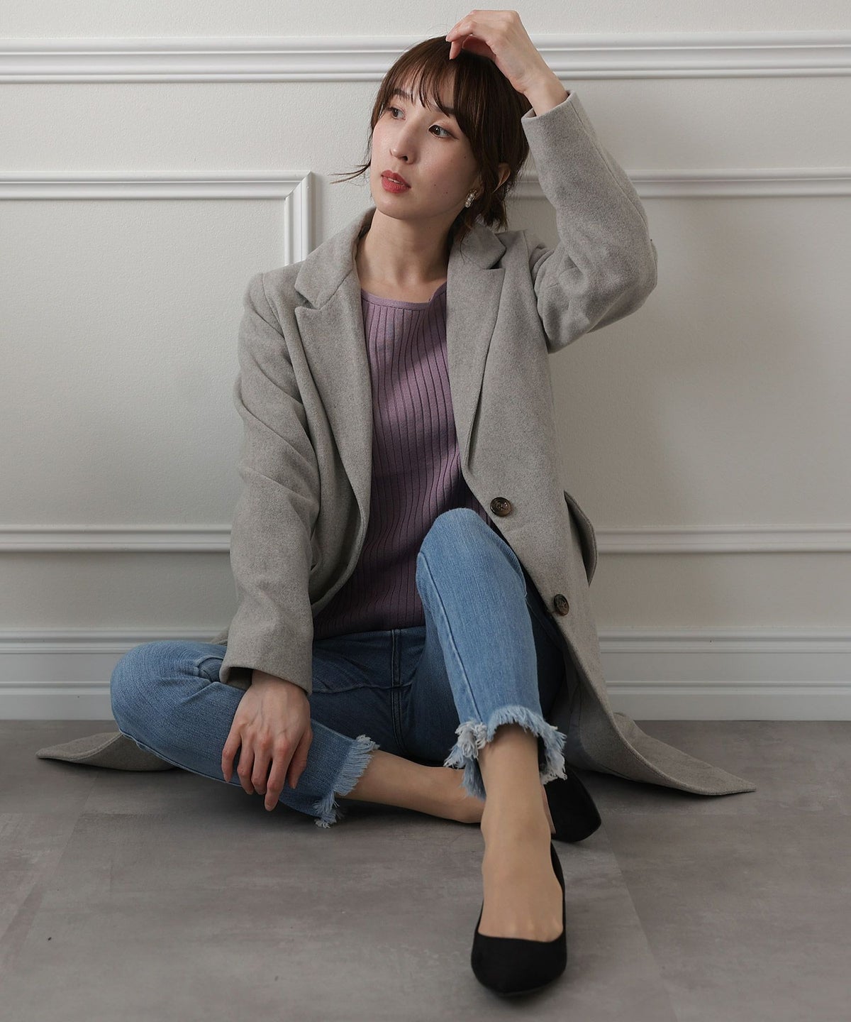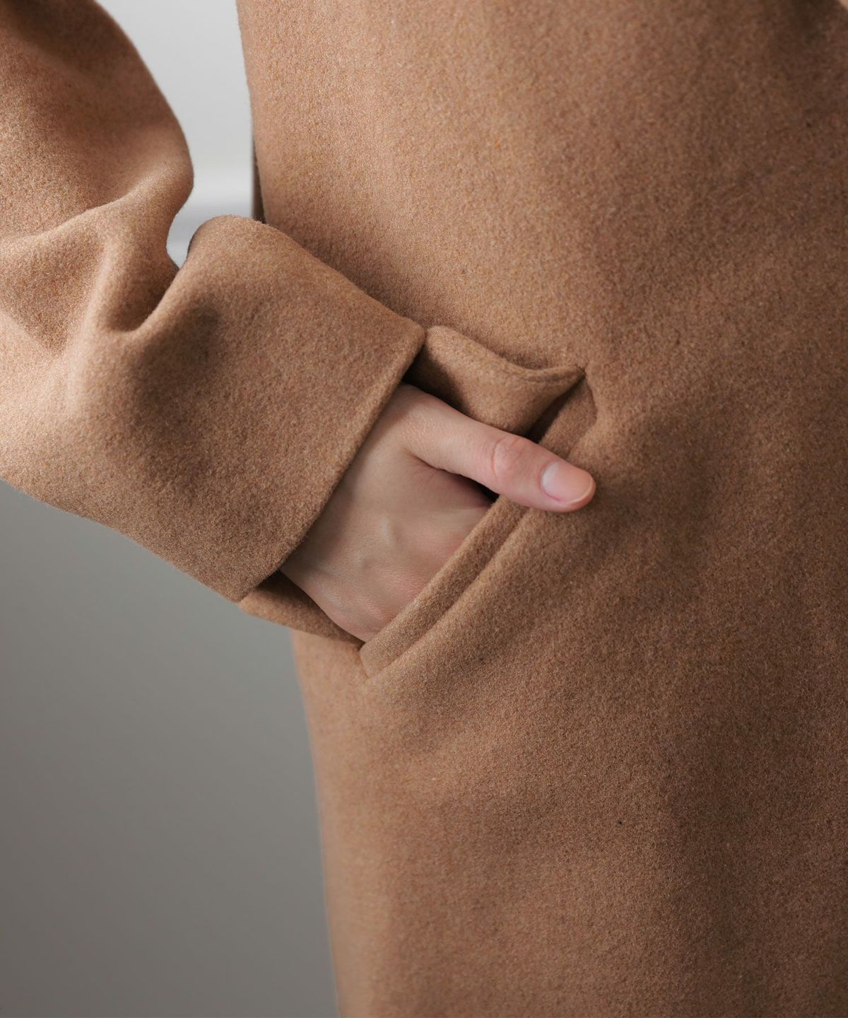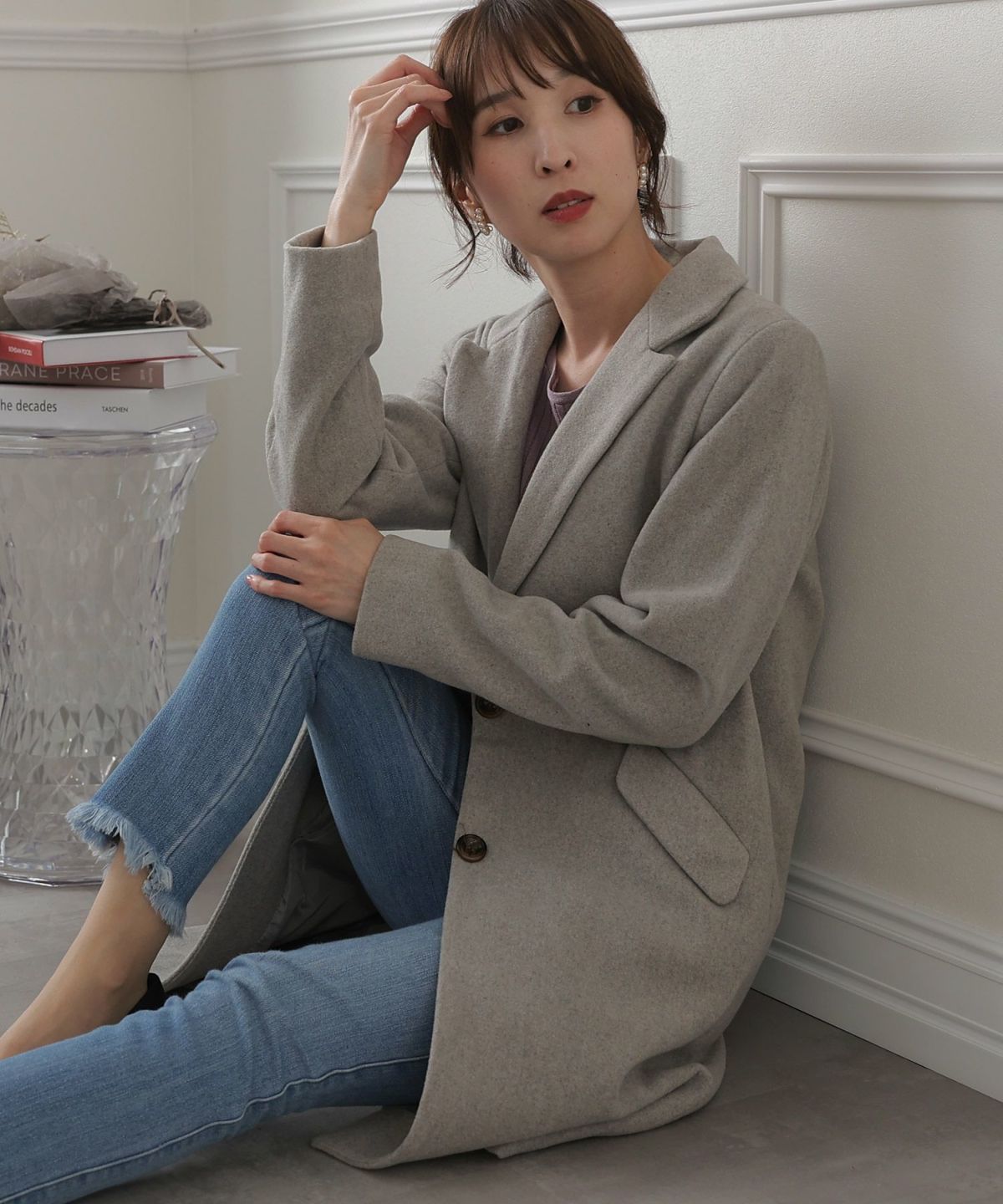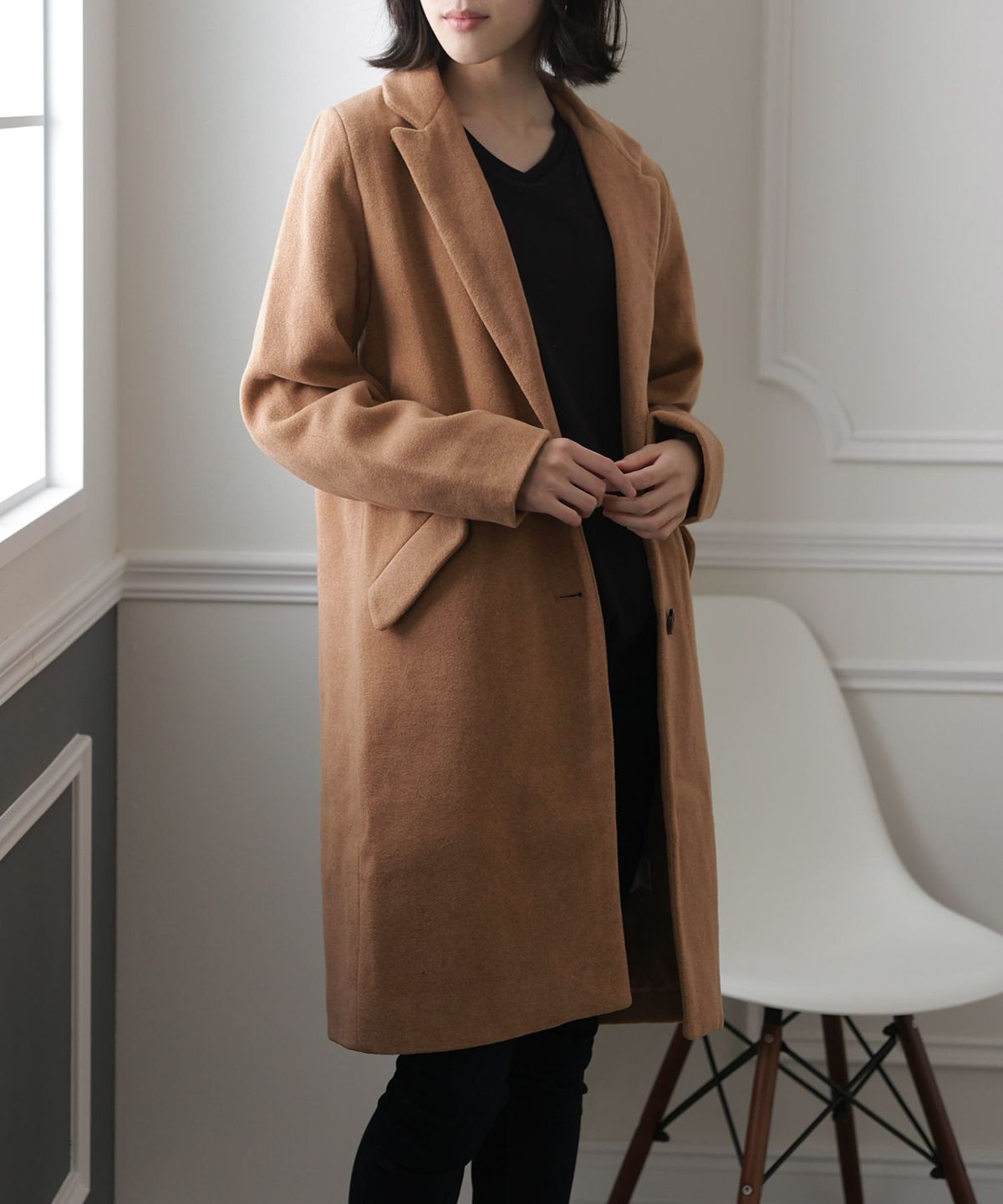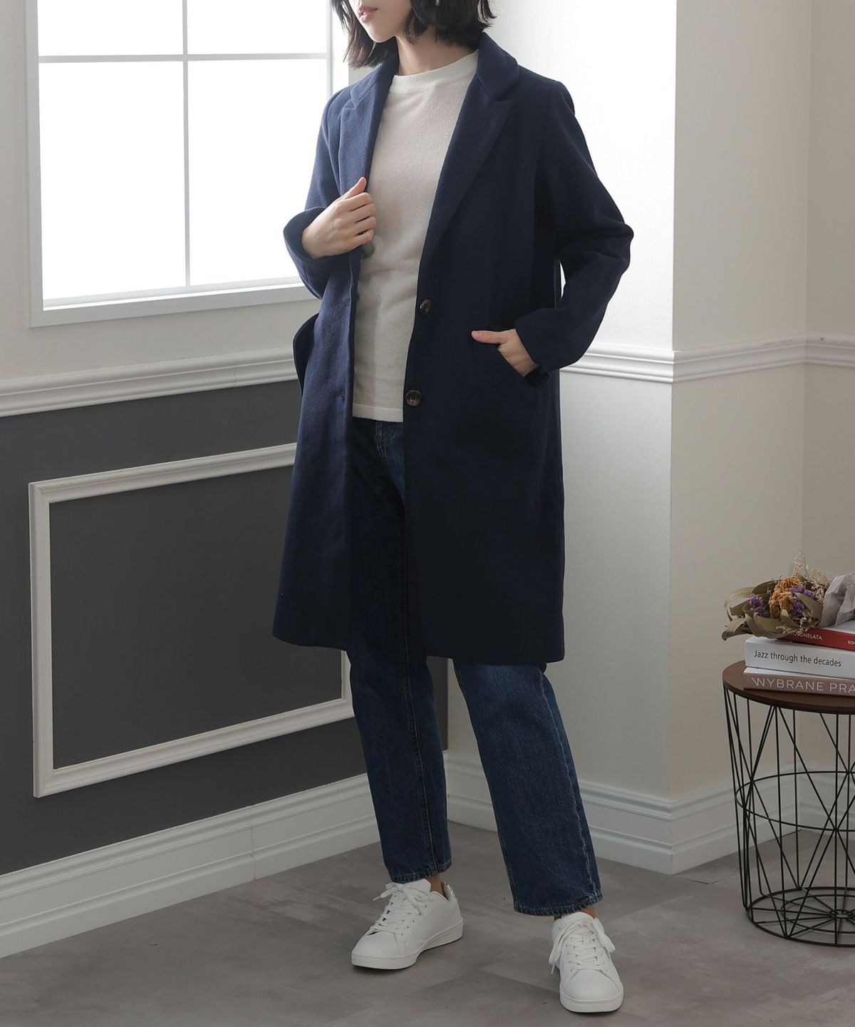 ★スタンダードなシルエットのこなれ感コート------------------------------------------------------------クールな印象高めるスタンダードシルエットなコート。マニッシュな雰囲気を持ちつつ大人の女性らしいスタイリングを叶えます。★襟の丸みとフラップ付きポケットがポイント------------------------------------------------------------少し抜け感与える襟の丸みと、フラップ付きポケットがデザインのアクセントに。羽織るだけできちんと感が出るのでお出かけ着やオフィス用まで幅広く着用いただけます。★素材感------------------------------------------------------------上品で控えめな起毛感が大人っぽい印象を高めてくれます。