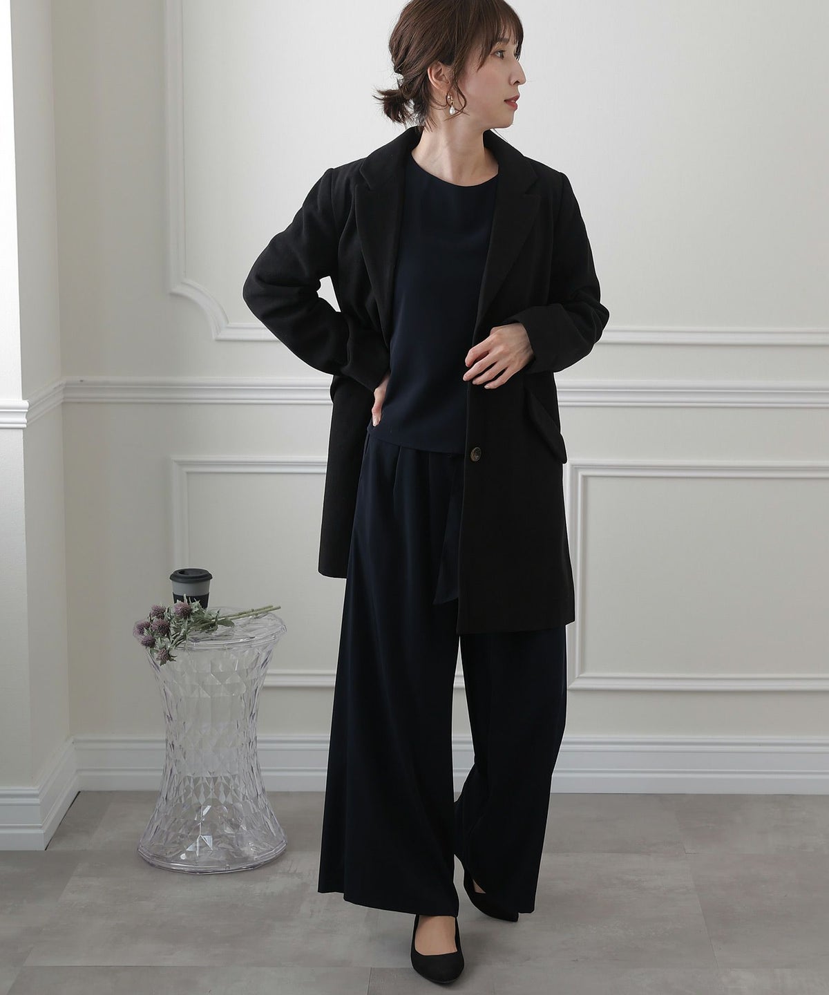 ★ミディアムな着丈が可愛いチェスターコート------------------------------------------------------------ジャケットを思わせるシルエットが魅力のミディアム丈コート。すっきりパンツスタイルで決めるのも、ロングスカートに合わせるのもおすすめ。★マニッシュなデザインがこなれた雰囲気に------------------------------------------------------------シンプルながら羽織るだけできちんと感の出るデザインに。お出かけ着に軽く合わせるだけでも大人っぽいスタイリングが叶います。★素材感------------------------------------------------------------上品で控えめな起毛感が大人っぽい印象を高めてくれます。