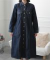 ★一枚で着られるデニムワンピース------------------------------------------------------------しっかりした生地感が魅力のデニムワンピース。一枚でコーディネートの主役にできるアイテムです。★ワンピースでもシャツでも着られる------------------------------------------------------------一枚で着ても、ボトムスを合わせたコーデにも使える一枚。ややフレアなラインなので無骨にならないのも嬉しい。★素材感------------------------------------------------------------肌に優しいコットン生地100%使用。