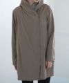 アウターの前を閉めると、中央ではなく左側にクロスさせたような雰囲気に。