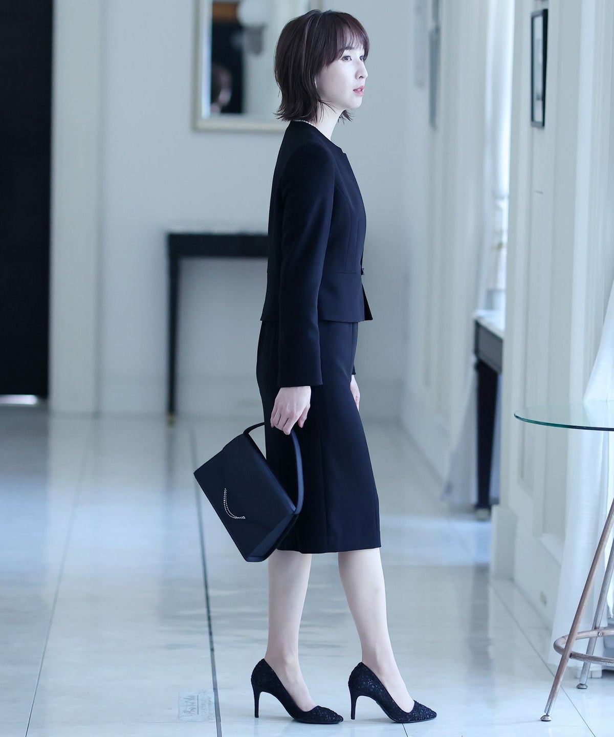 ハリ感ある生地がきちんとした印象高めるフォーマルスーツ。