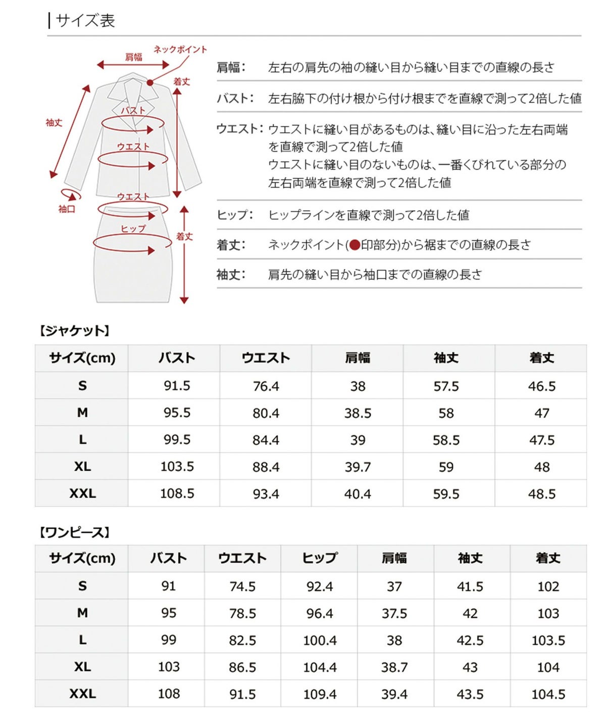 ■素材:【ジャケット】表地:ポリエステル100%・別布:トリアセテート85%・ポリエステル15%【ワンピース】表地:ポリエステル100%【裏地】ポリエステル100%