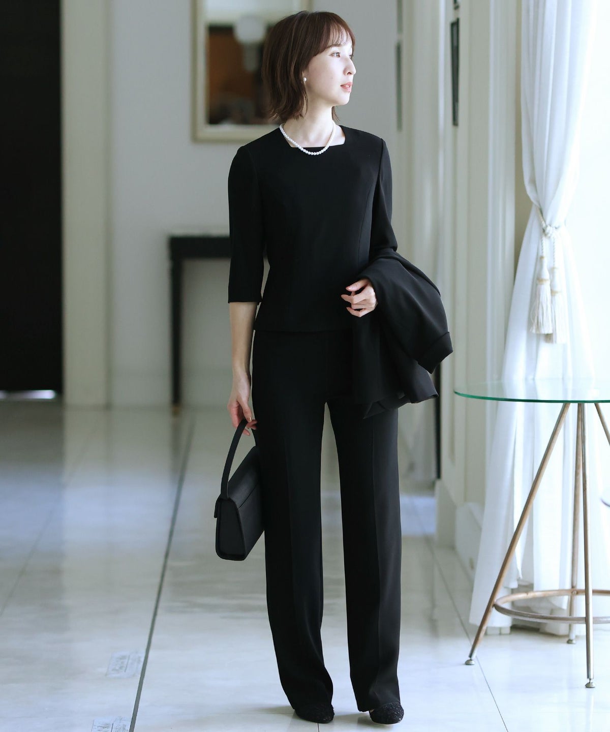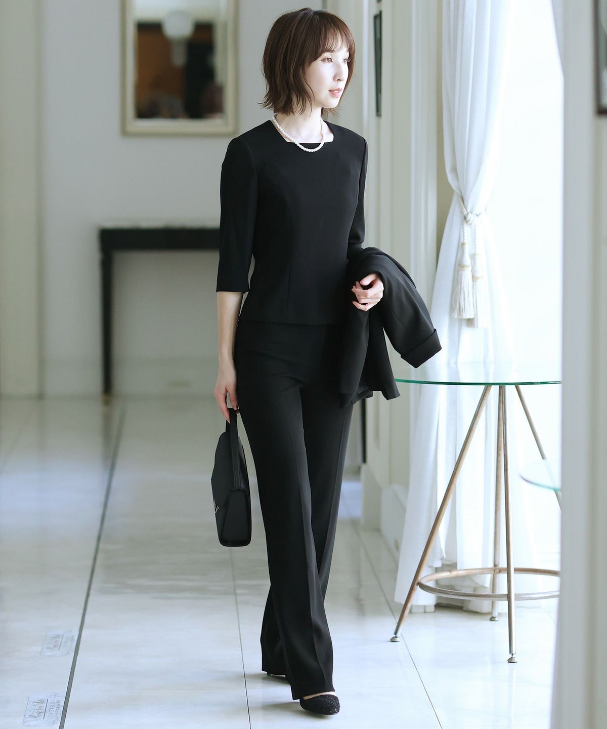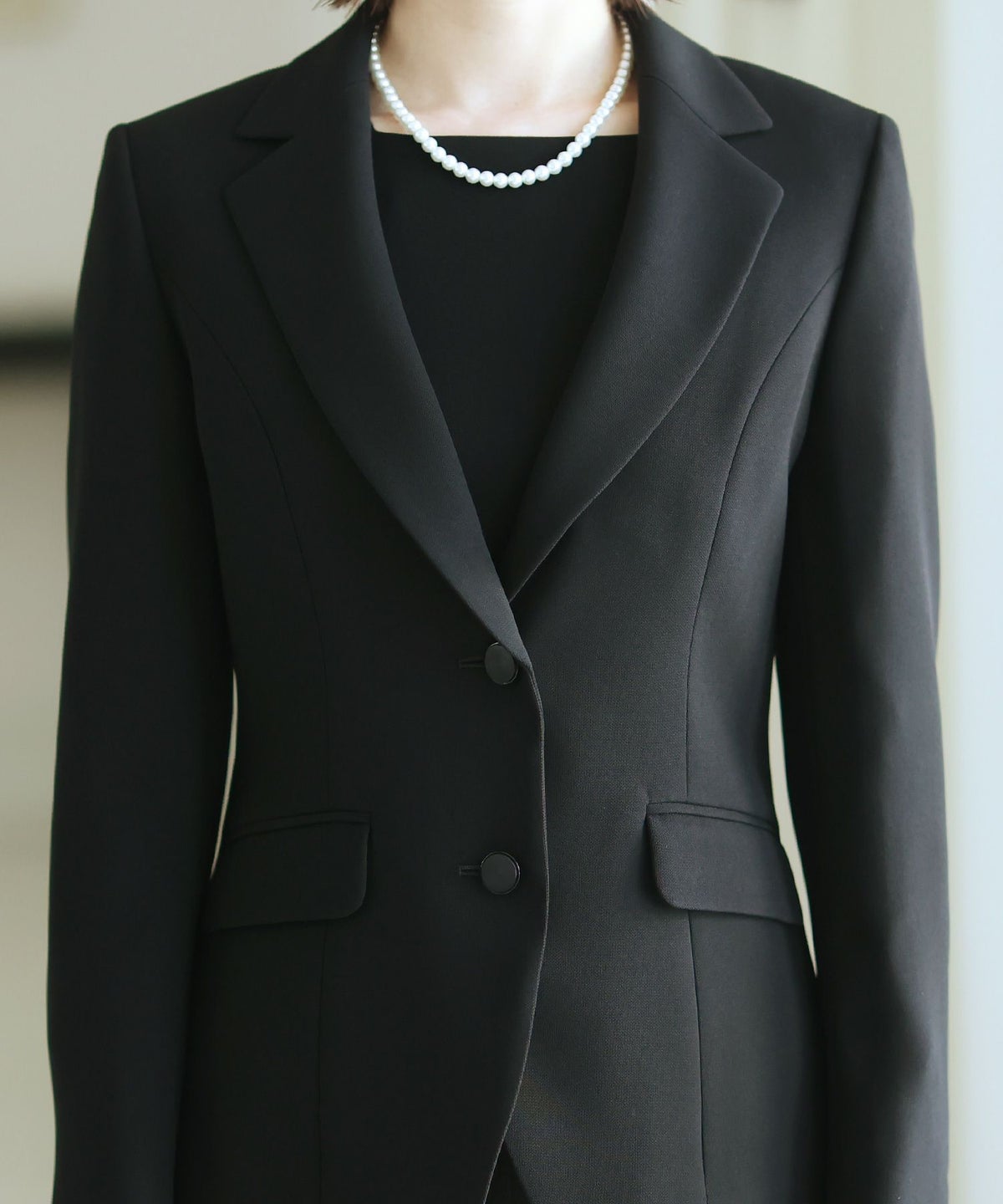 ハリ感ある生地がきちんとした印象高めるフォーマルスーツ。