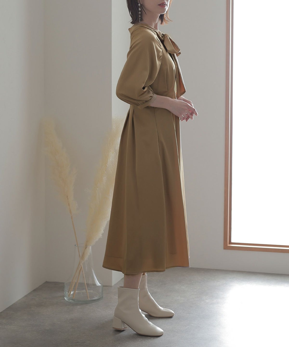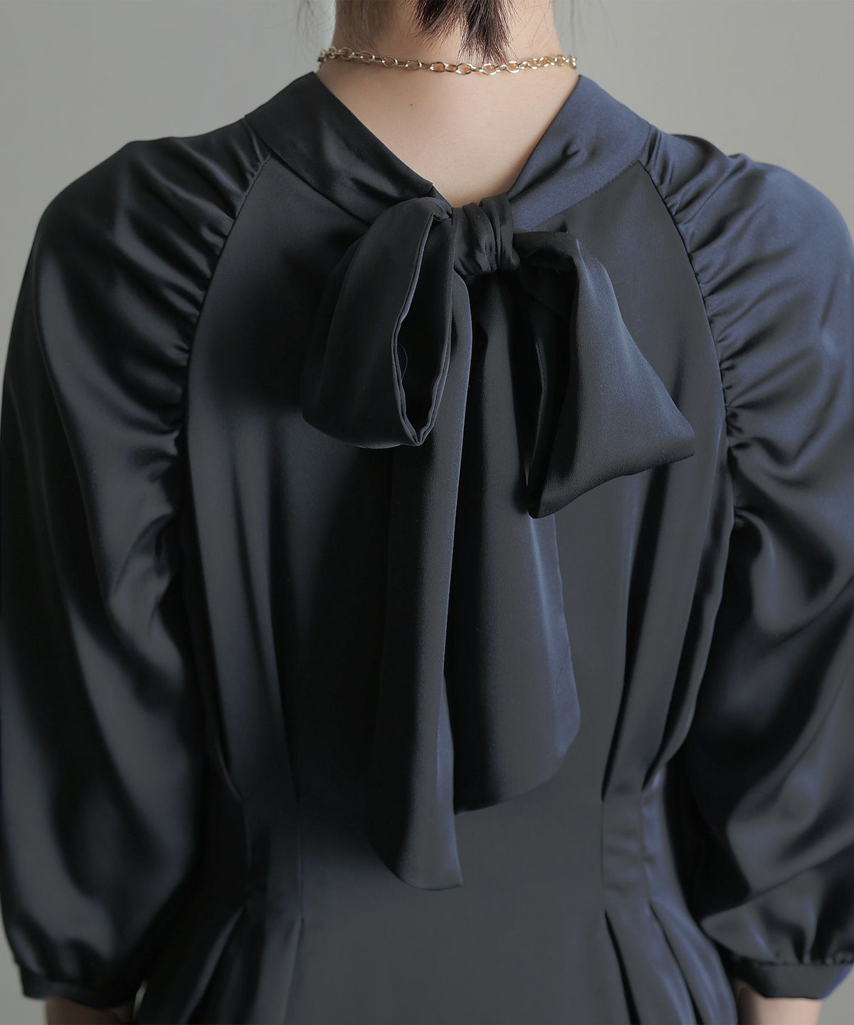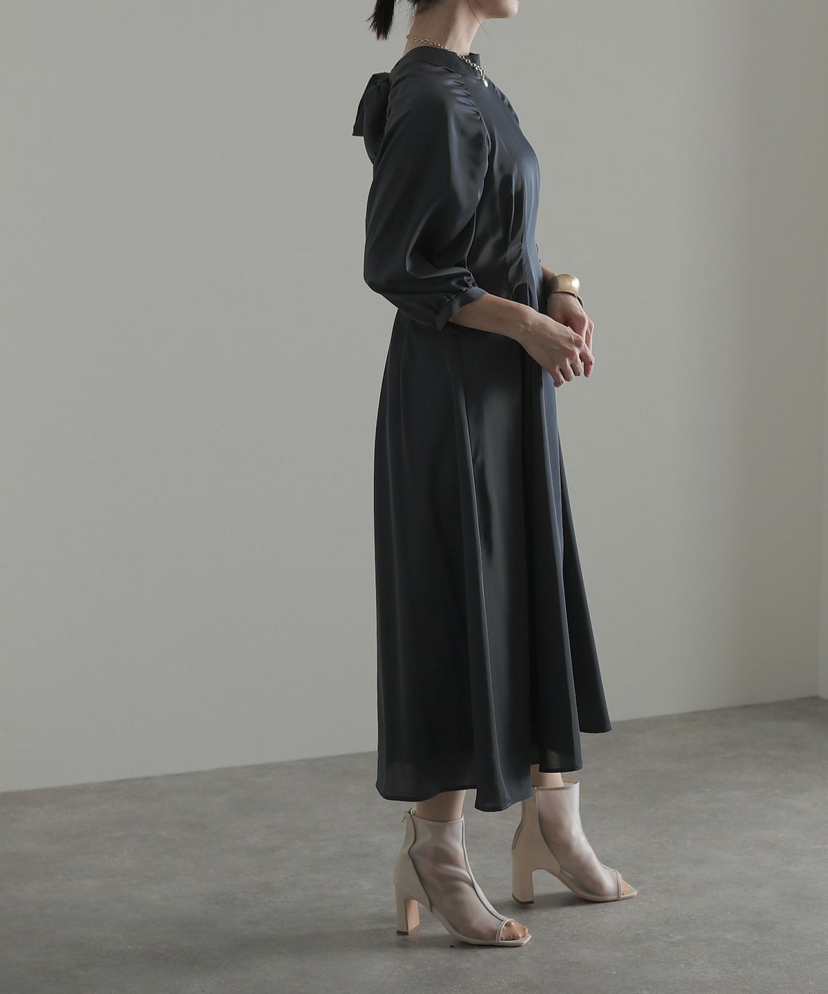 サテンのヴィンテージ感のある光沢が上品な雰囲気に。