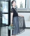 ★体型カバーポイント------------------------------------------------------------【二の腕】【脚】【ウエスト】【ヒップ】レーストップス風のドッキングデザインがウエストをカバー。フレアなシルエットなので気になるヒップも隠します。★繊細なコードレースを使用したドッキングデザイン------------------------------------------------------------コードレースが上品さをプラスするトップス風ドッキングデザインドレス。ウエスト部分はスカラップレースになっておりきれいめな雰囲気に。★チュールプリーツが綺麗に靡く------------------------------------------------------------シアーな質感が今っぽいチュールスカートデザイン。裾のワンポイントテープでありきたりさを感じさせない、目を惹く一枚に。★デイリー使いもできる一枚------------------------------------------------------------アウターやカーディガンを羽織ればデイリー使いもできるアイテム。オケージョンだけでなく普段用ワンピースにもお使いいただけます。★素材感------------------------------------------------------------程よいチュールの透け感が綺麗な一枚。身頃のコードレースはしっかりめの素材感に。★こんなシーンの利用にオススメ♪------------------------------------------------------------【結婚式】【二次会】【同窓会】【食事会】【セレモニー】【発表会】でもご利用いただけます。