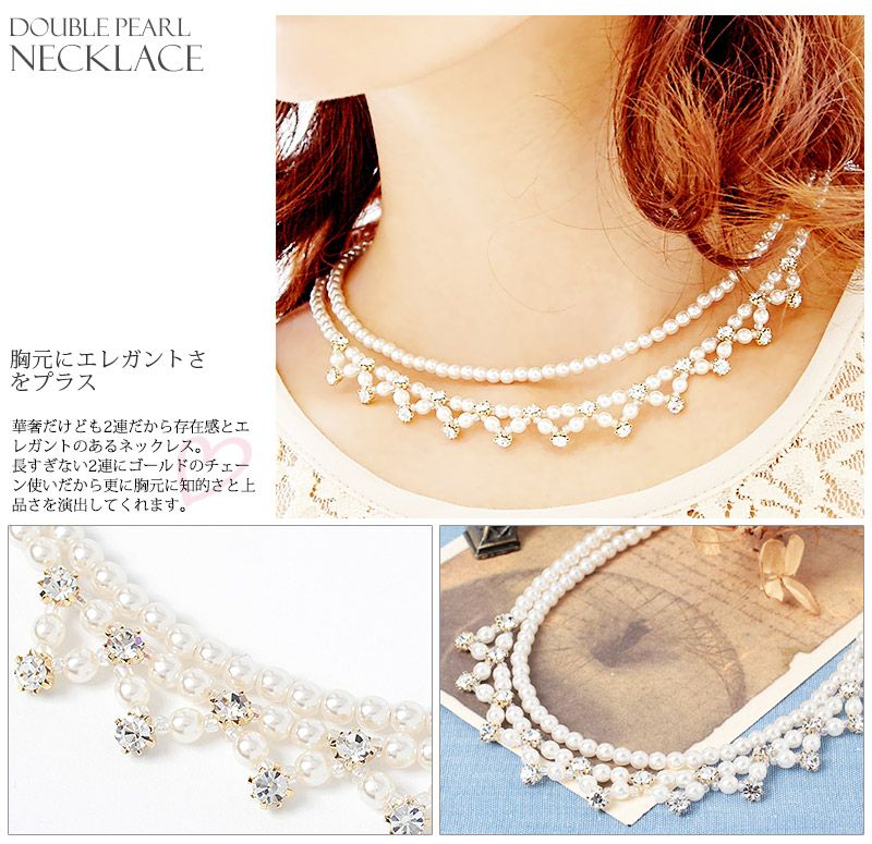 ネックレス ラインストーン パール 結婚式 レディース Necklace ビジュー アクセ ゴージャス 可愛い ホワイト ピンク