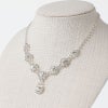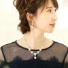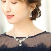 ネックレスもイヤリングもビジューが揺らめくデザインで、目を引きます。