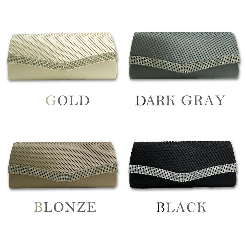 サテン プリーツ クラッチバッグ ラインストーン ビジュー