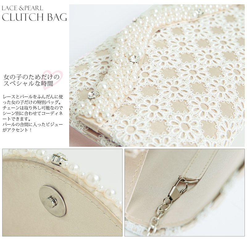 ロマンティッククラッチバッグ レース&パールクラッチバッグ
