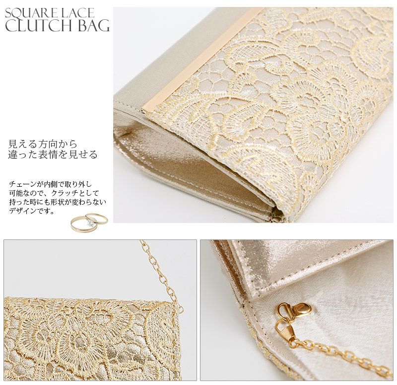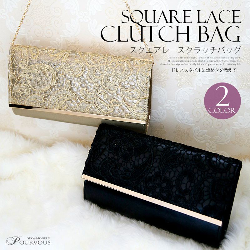 ドレススタイルに煌きを添えて スクエアレースクラッチバッグ