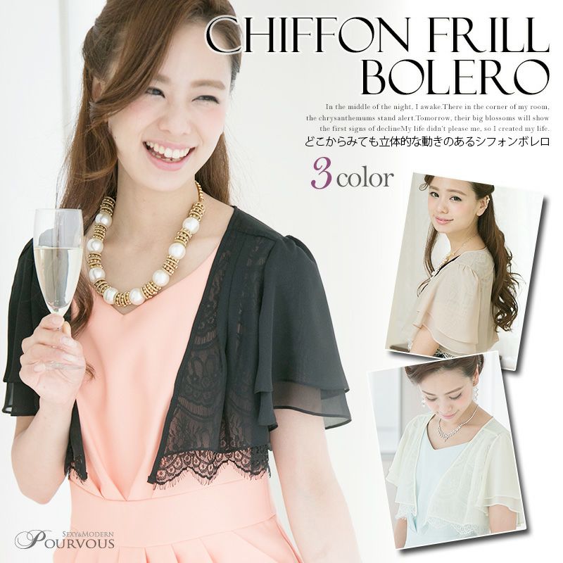 どこからみても立体的な動きのあるシフォンボレロ シフォンフリルボレロ