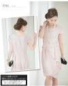 花びらを纏ったようなドレープがウエストラインを華やかに彩り、女性らしさを演出します。