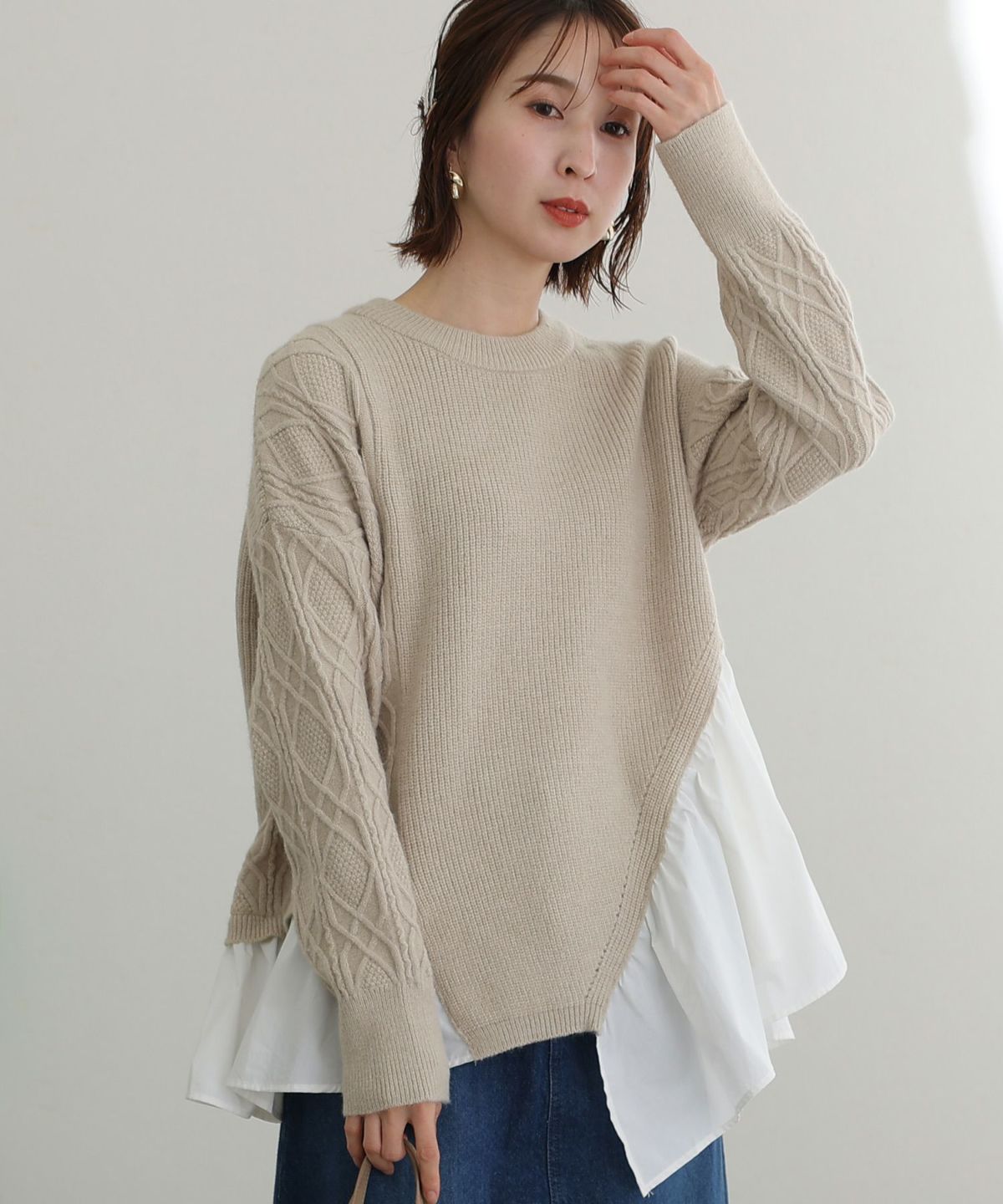 他の画像を見る ニットとブラウス素材の組み合わせがかわいい レイヤード風アシンメトリーニット SALE 1~3営業日以内発送 定価 ¥ 13,799 販売価格 ¥ 7,070 税込 カートに入れる お気に入りに登録する