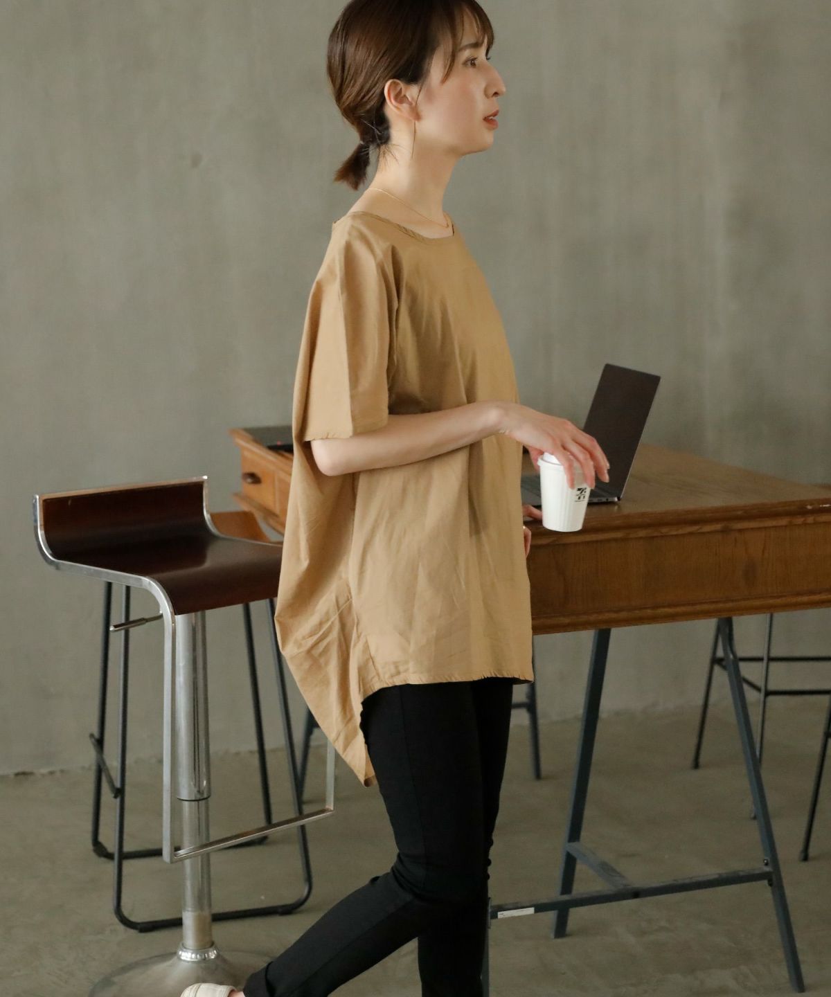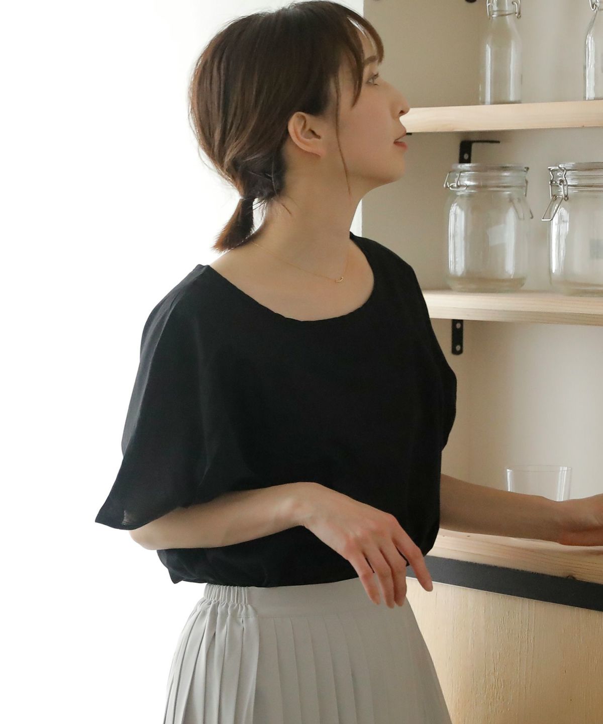 綿100%のしっとりとした肌触りが心地いい、ナチュラルな風合いのカットソー。広めに開いたボートネックが春夏に嬉しい抜け感あるアイテムです。