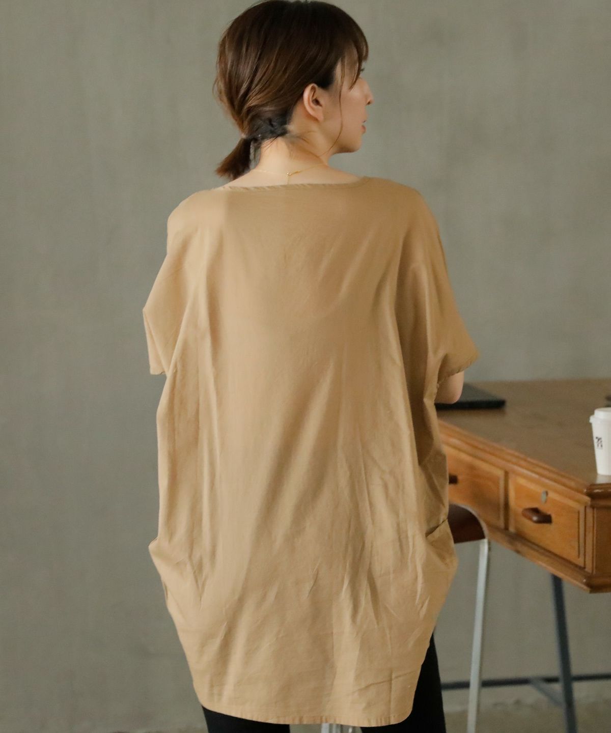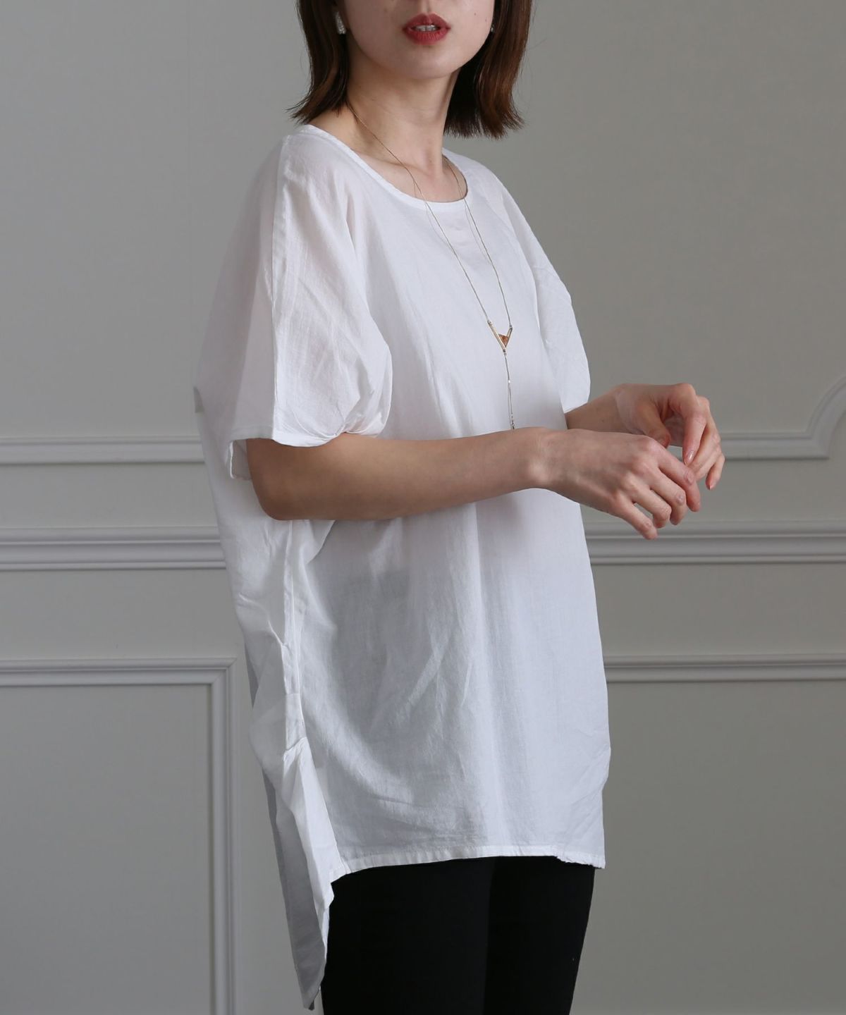 肌触り滑らかな綿100%の生地を使用。やや透け感ある厚みの素材になっています。
