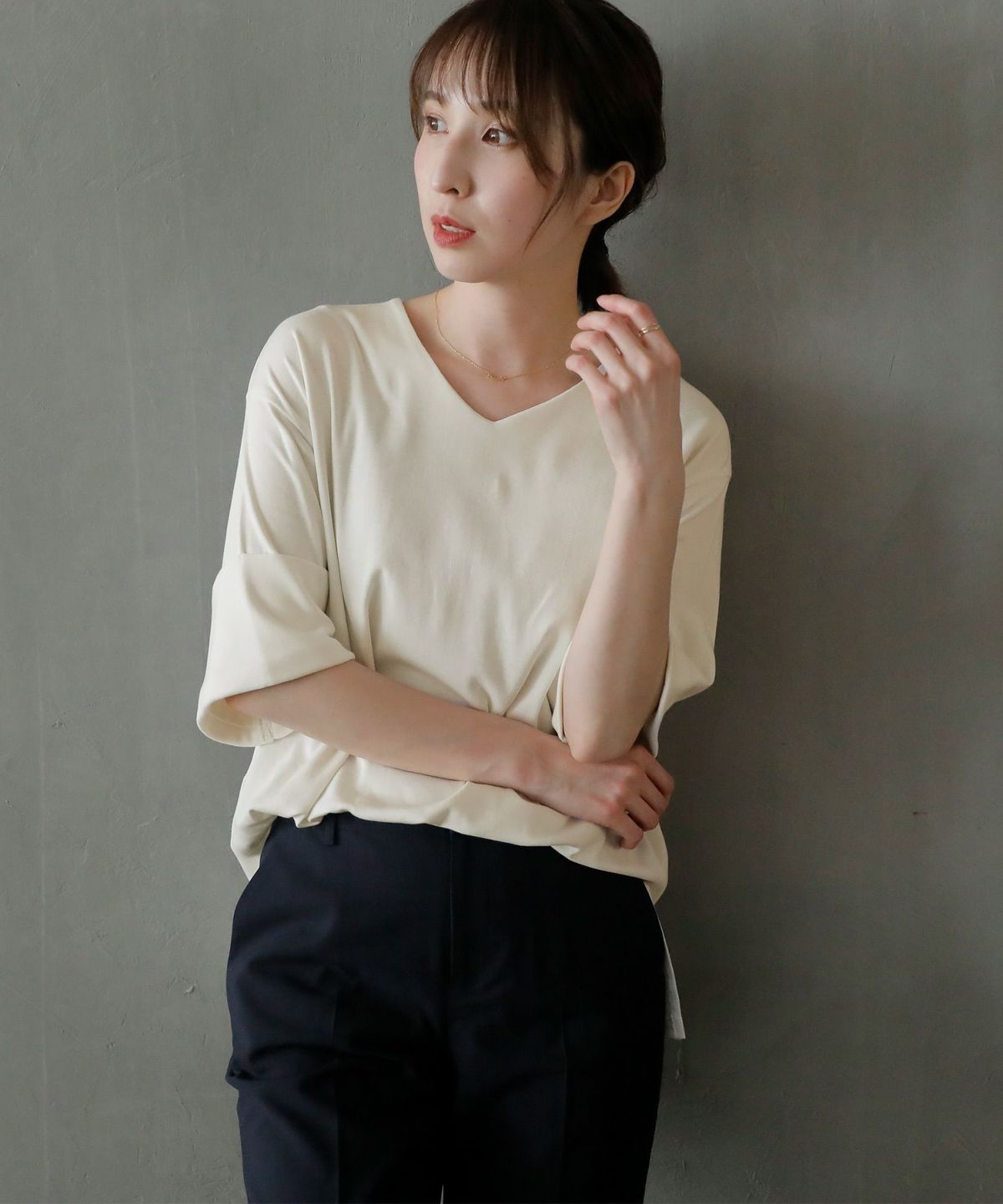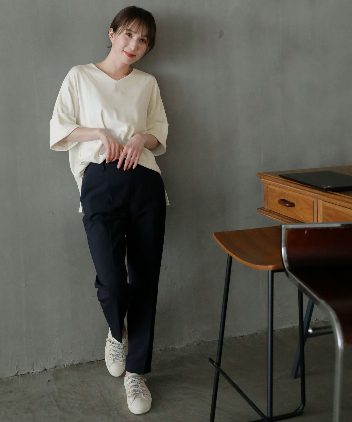 肌触り滑らかな綿100%の生地を使用。厚みは控えめでしっかりとした生地感。