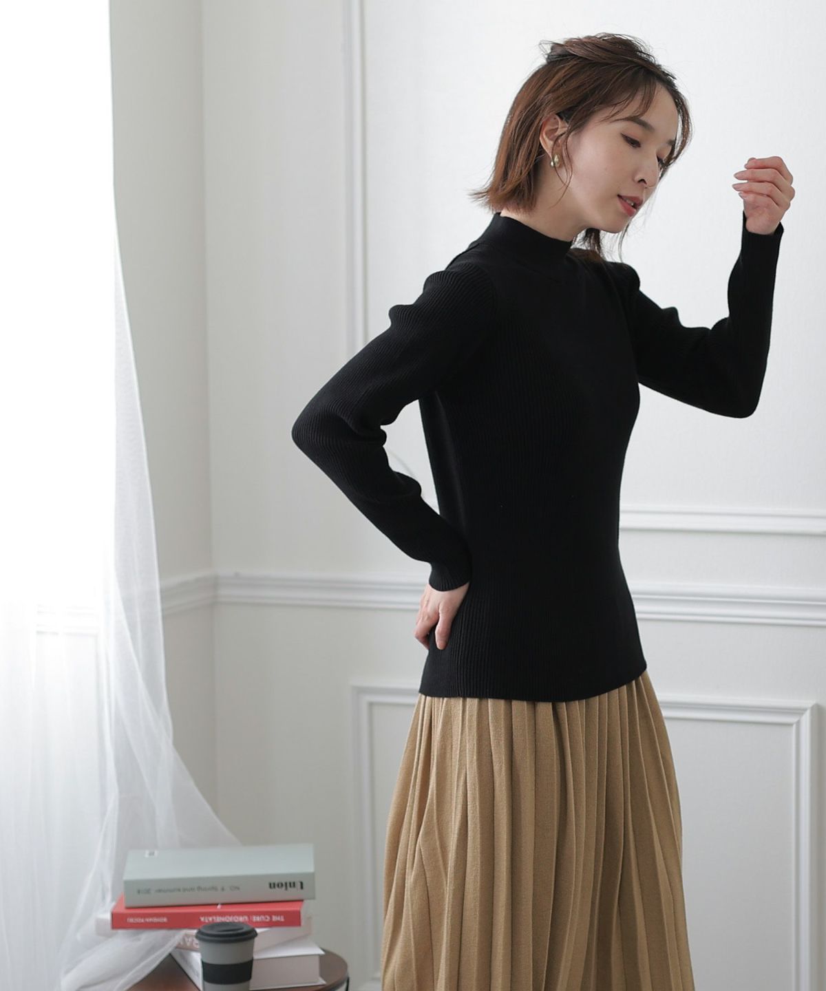 リブ生地のニットが肌触りよく、肌寒い季節にぴったり。