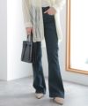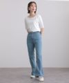 ■柔らかいデニム生地で着心地がいいウエストサイドがゴム仕様で楽ちん。裾広がりのフレアシルエットで美脚効果も◎