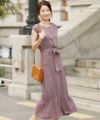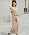 柔らかなニット素材のトップスとスカートがセットで、付属でリボンベルトも付いてきます。