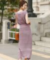 オシャレな透け感を表現してくれる、かぎ編みのセットアップです。