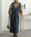 ★ゆったりナチュラルに着こなすコンビネゾン------------------------------------------------------------さらっと着用できるVネックのデニムコンビネゾン。ウエストは紐で調節できるので好きな着用感で着ていただけます。★コットン100%のデニム生地------------------------------------------------------------コットン100%使用のくったりとしたデニム生地が抜け感あるアイテム。トップスと合わせるだけでコーデが完成する嬉しい一枚です。★素材感------------------------------------------------------------綿100%のデニム生地使用。
