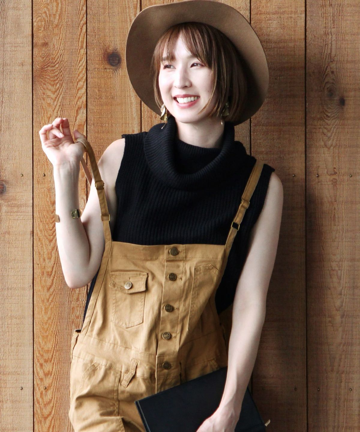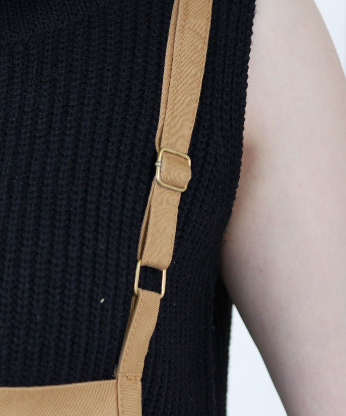 トップスを変えればどんなシーズンでも着ていただけます♪アジャスター付きなので肩紐の長さ調節ができ、後ろにもポケット付きなので1枚は持っておきたいおススメな1着です。