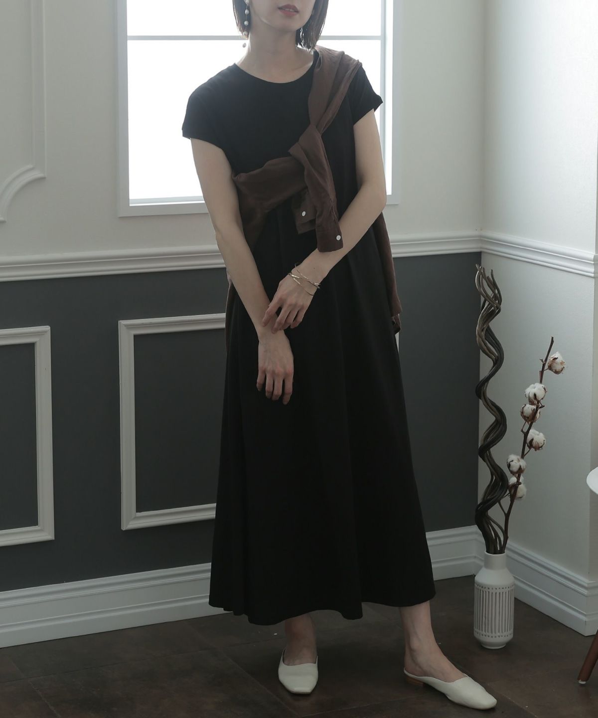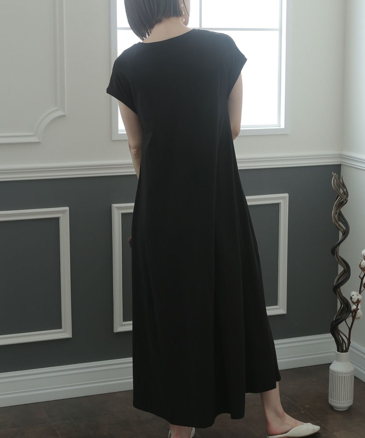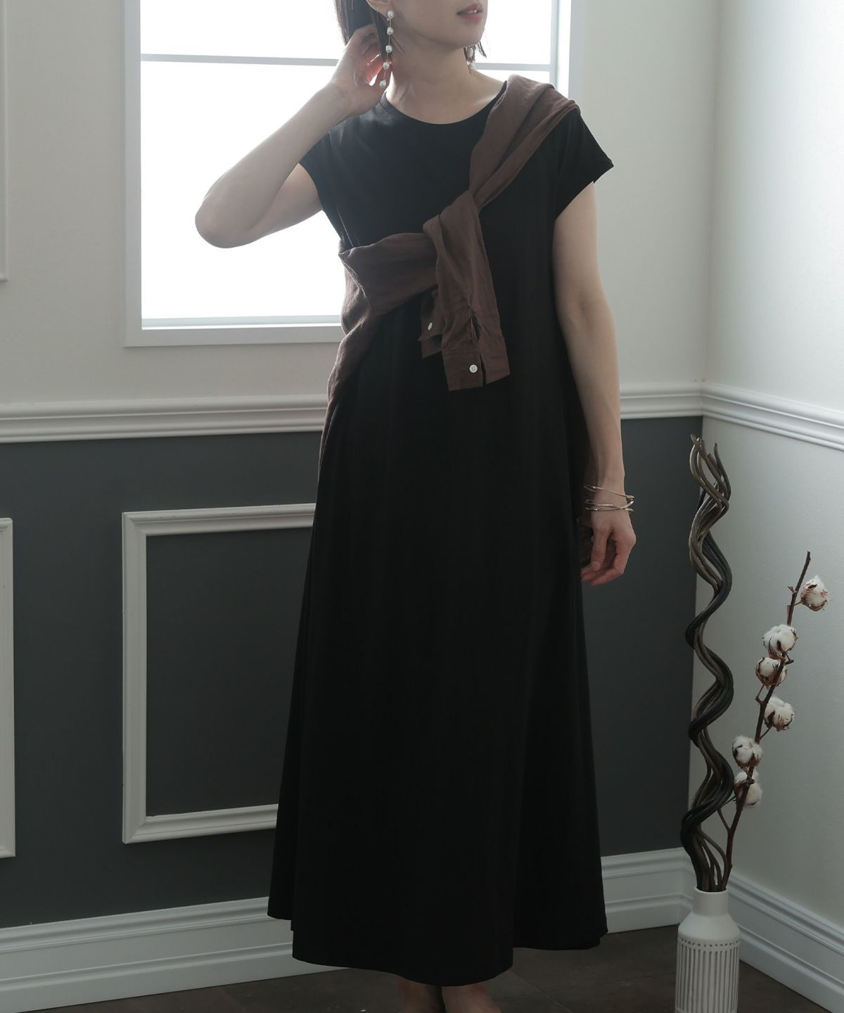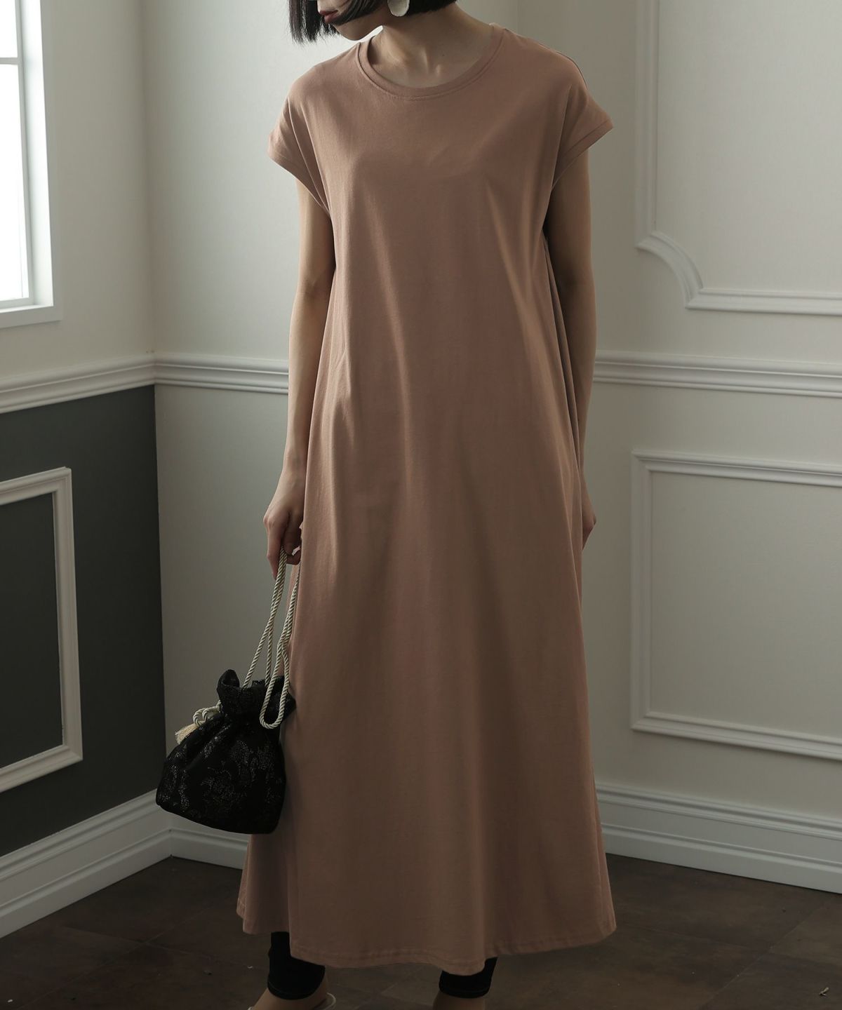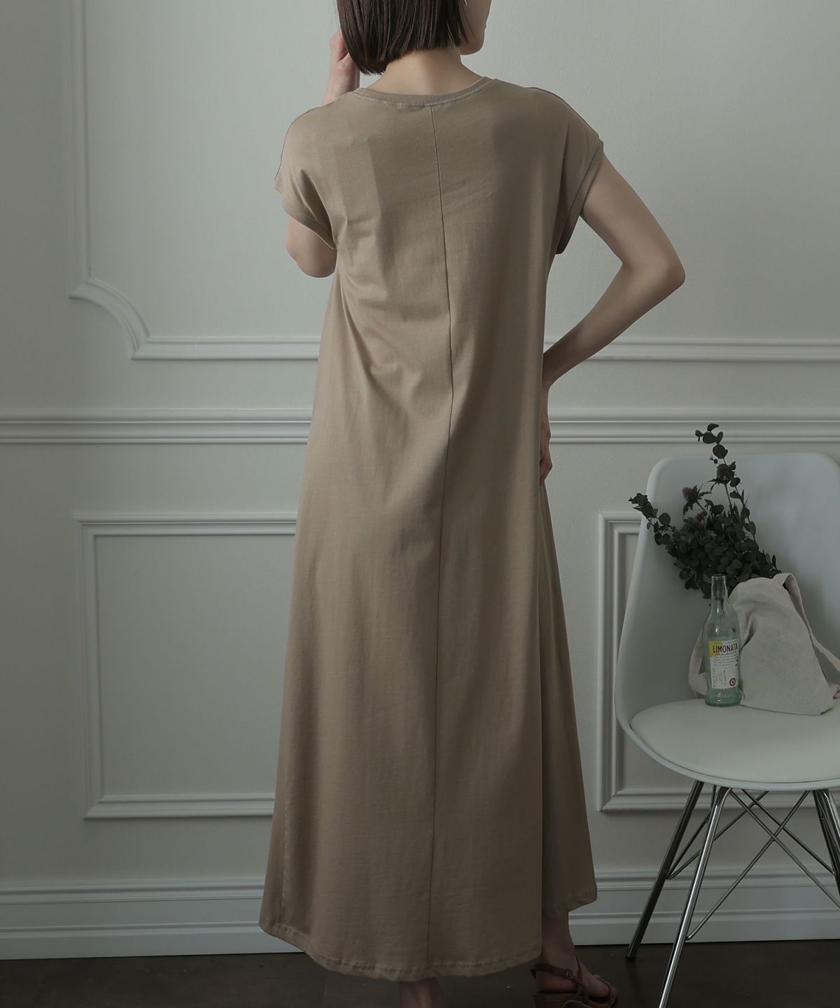 フレンチスリーブでさり気なく肩をカバーできるワンピース。Aラインなので裾の広がりが可愛く、クルーネックが首元をすっきりと見せてくれます。