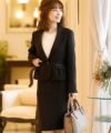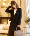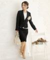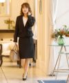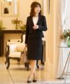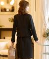 ドビー織生地のテーラードジャケットとブラウス・スカートのスーツ3点セット。