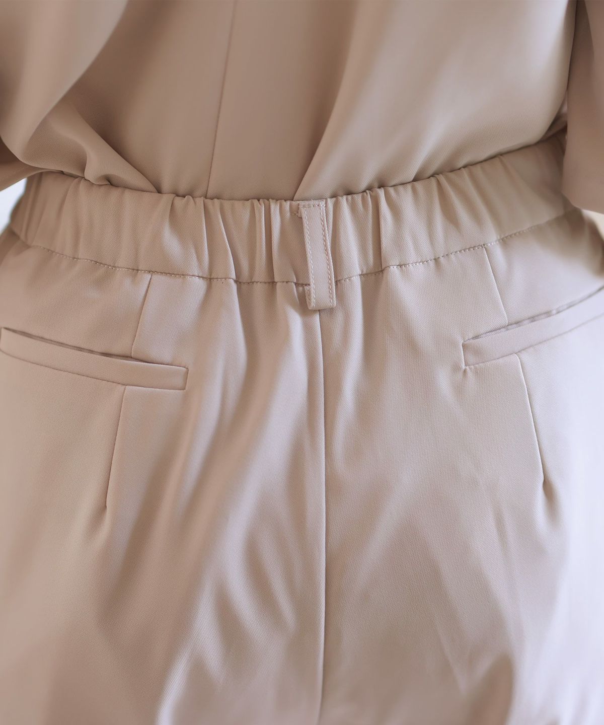 ■テーパードとワイドと選べる2タイプのパンツ背面ウエストゴムで着心地ラクチン。タックとセンタープレス加工で履くだけ美脚効果◎