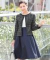 先染め素材が風合いの美しいミックスツイード生地を使用したジャケット。ワンピースのスカート部分は光沢感ある上品で華のある生地感になっています。
