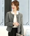 立体感あるフリンジが顔周りを華やかに見せるノーカラージャケット。