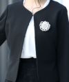 レーススカートで女性らしく可愛い印象にカッコイイ印象のテーラードJKとかわいい印象のノーカラーJKオフィスからセレモニー・オケージョンまで幅広く対応できます。ノーカラーJKにはフロントホック部分にビジューが付いており華やかさをプラスレーススカートが女性らしさを増してくれます。