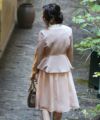 ジャケットはペプラムになっているのでウエストが引き締まった印象に。